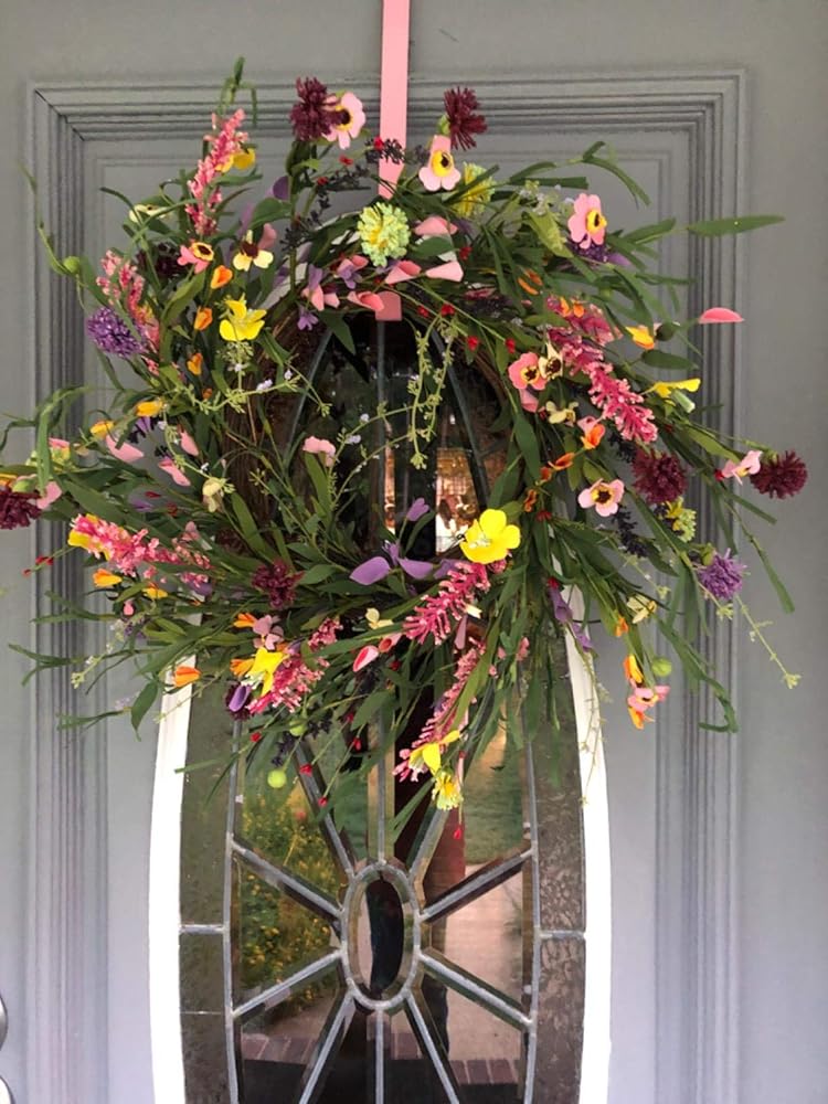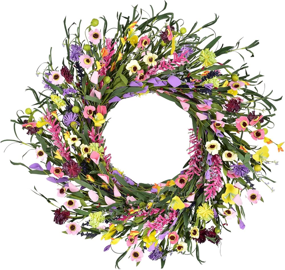 【 Handmade Wreath 】Handmade Front Door Wreath is hand-made with high-quality silk flowers, natural Grapevine wreath base. Non-toxic, exquisite and durable, suitable for use in a variety of scenarios.