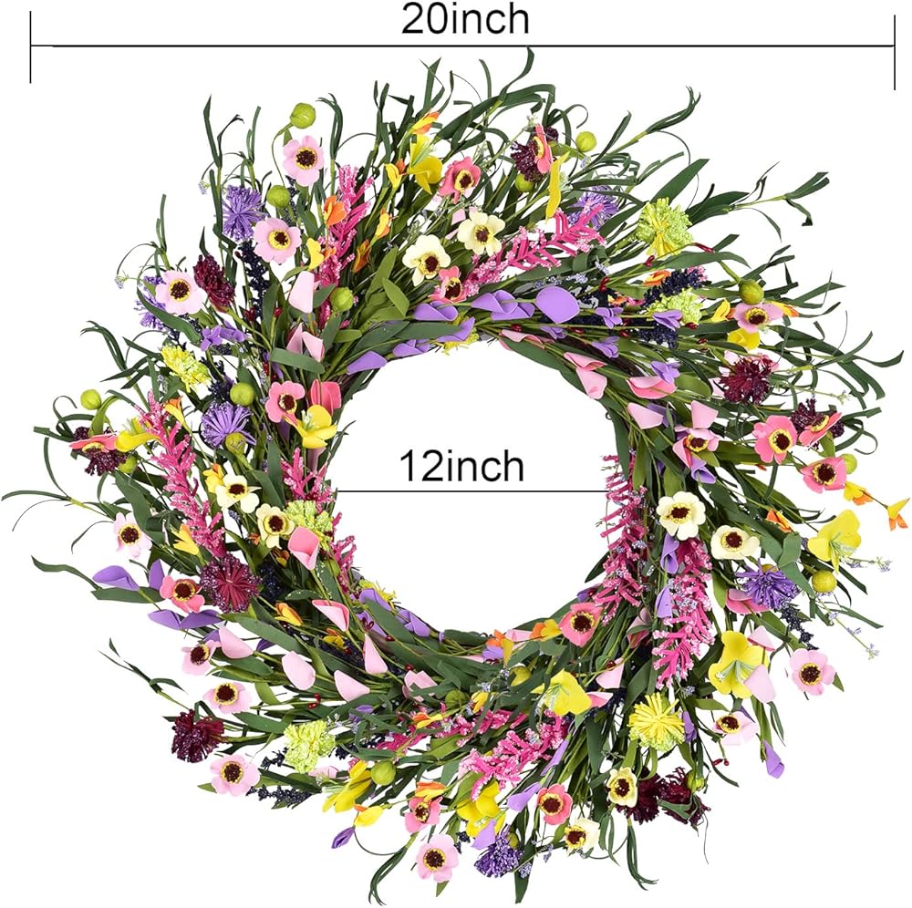 【Wreath Size 】our spring wreath size is 20inch,Adjustable the Spring Wreath leaves stem to 20inch,innder diameter is 12inch.