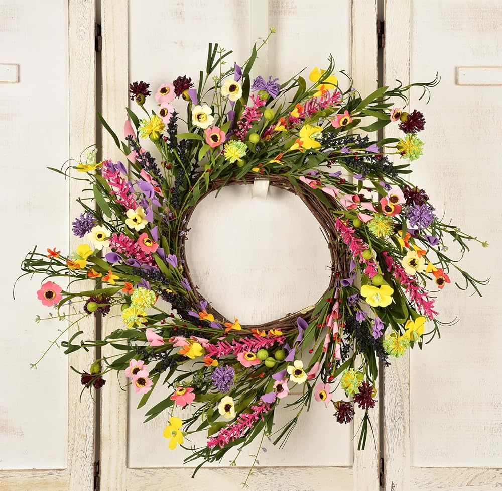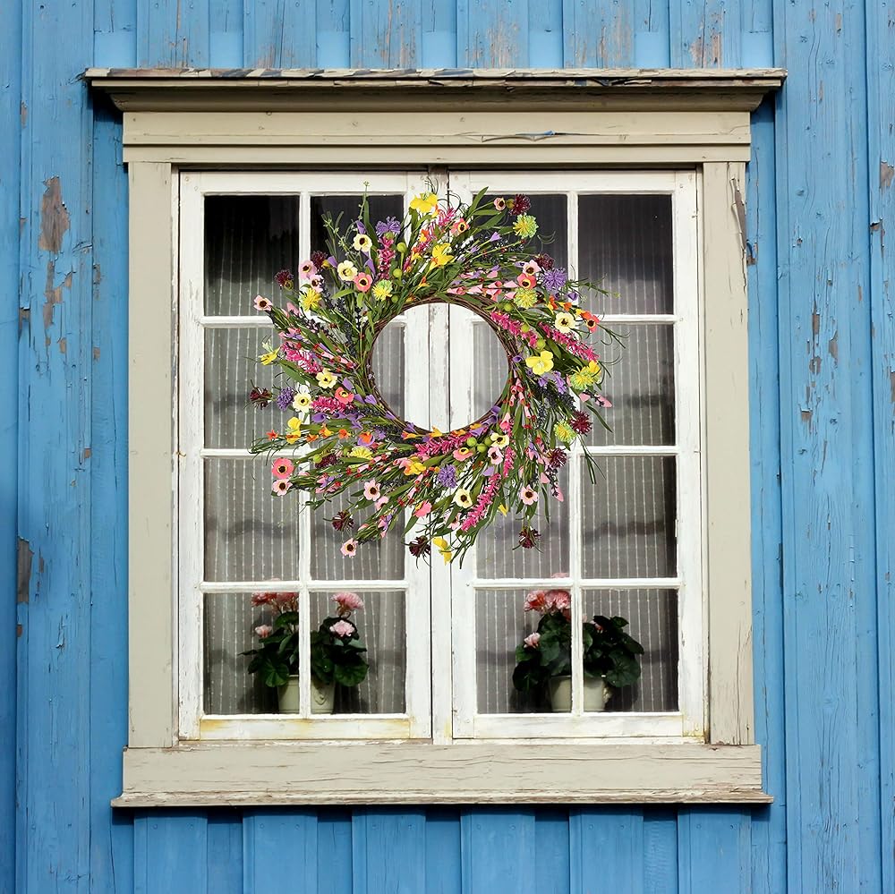 【 Indoor & Outdoor Display】 The artificial wreath with Natural vine material and high-grade waterproof silk flower, can be used both indoor and outdoor. Hanging this lightweight summer wreath to add a splash of spring color to your front door.
