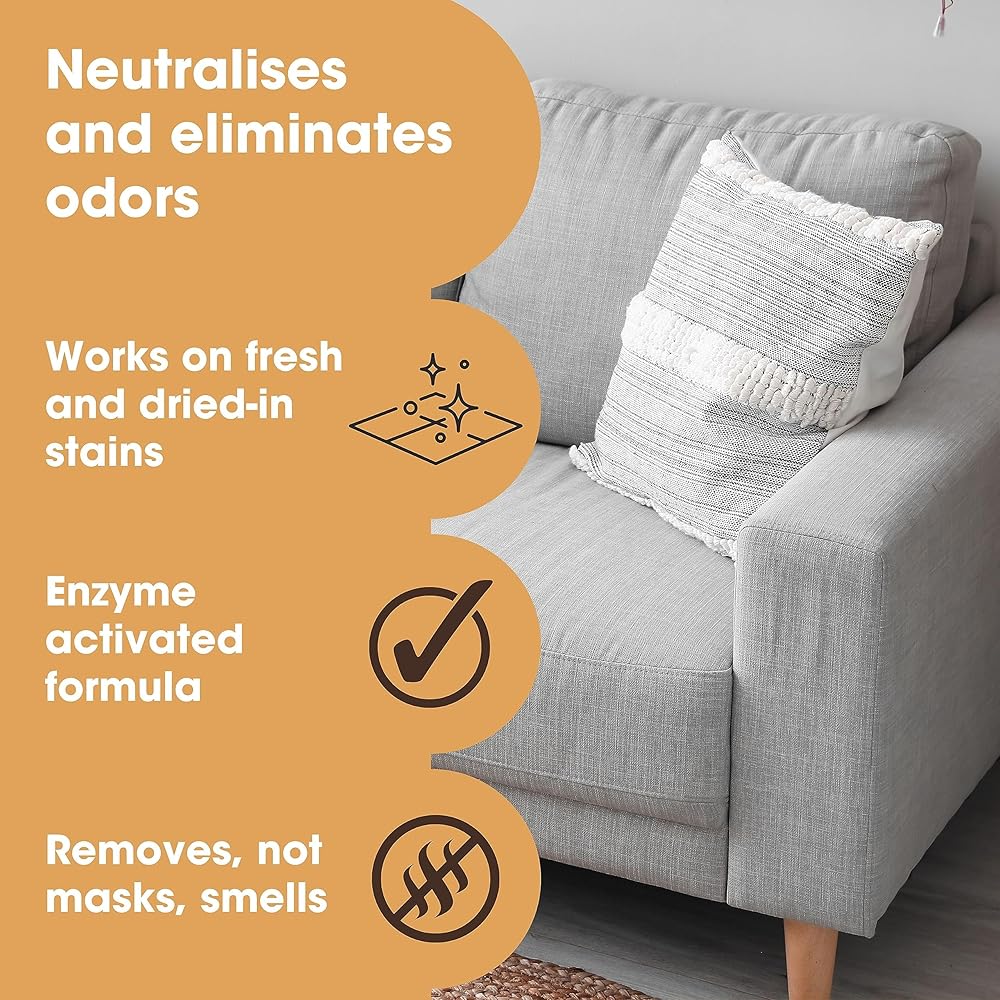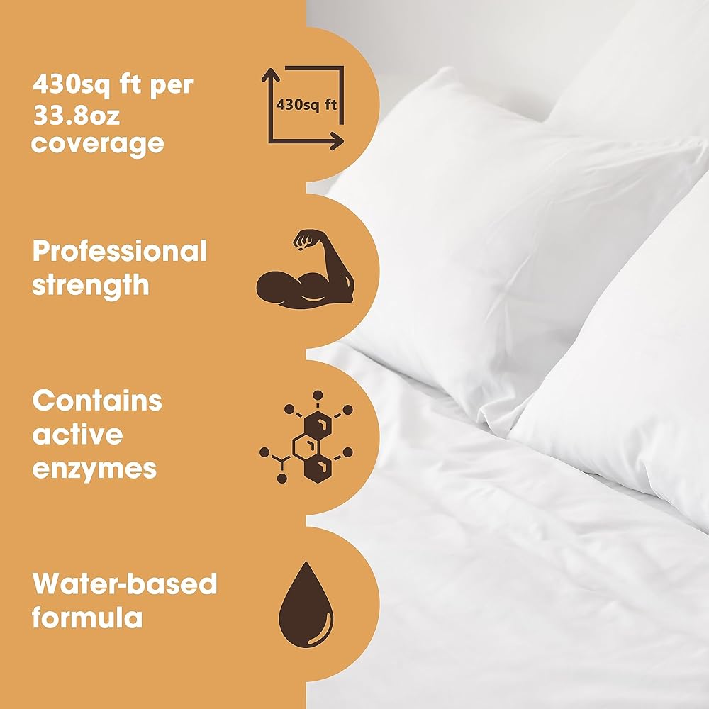 MATTRESS URINE REMOVER, NON-HAZARDOUS AND SAFE: This cleaner is enzyme activated and neutralizes and deodorizes urine upon direct contact. It is a pet stain cleaner that is safe to use on surfaces that your children or pets play on.