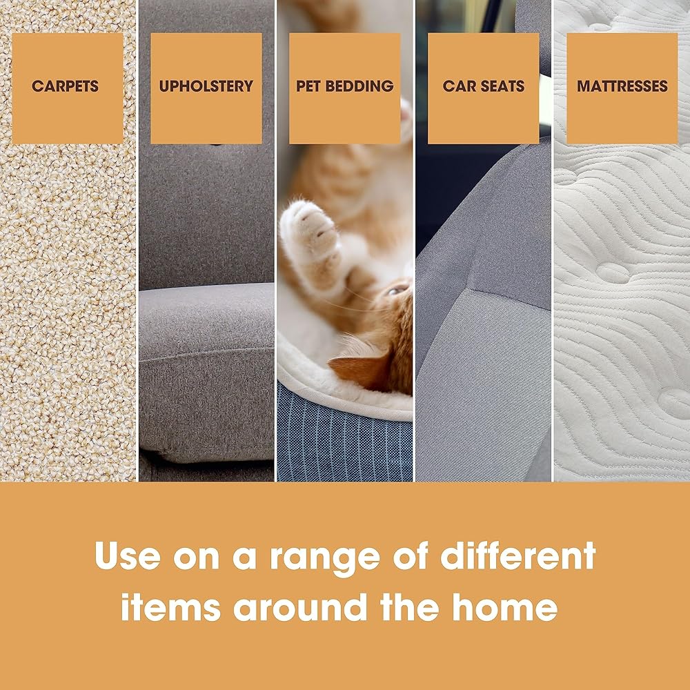 WORKS ON MULTIPLE SURFACES: Not only is this a great pet stain carpet cleaner, but it is also an effective pet odor eliminator for your home as it works on Mattresses, Clothing, Leather, as well as multiple other surfaces