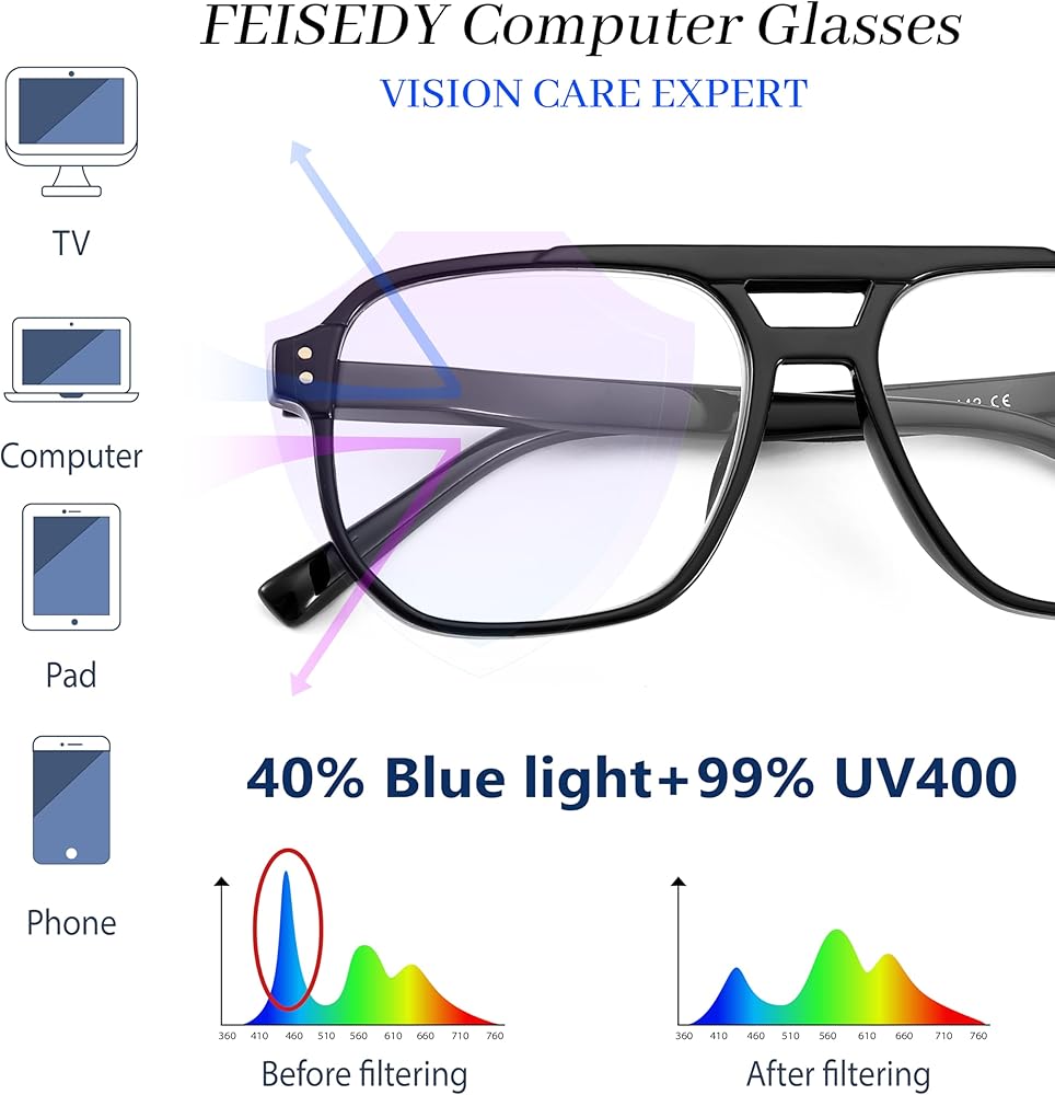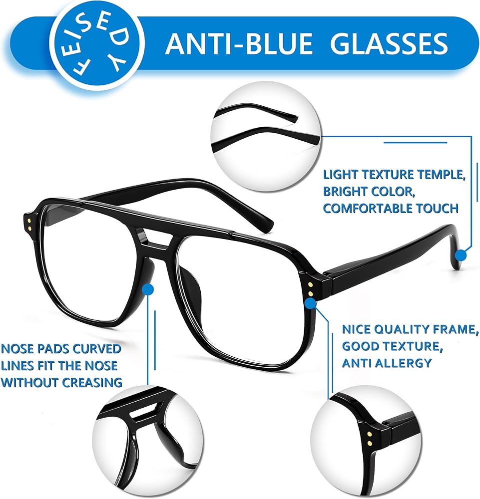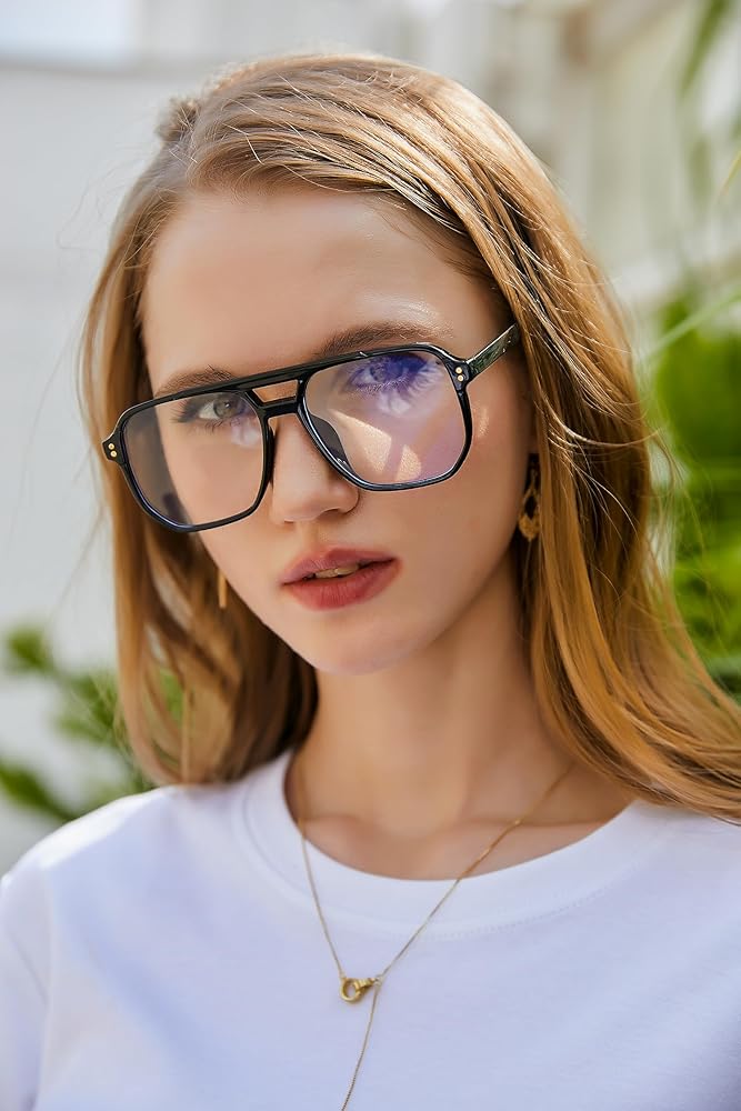 [Stylish Aviator Oversized Design] These blue light filter glasses feature a trendy and fashionable oversized square lightweight frame, follow the 70s Classic eyewear design, making you look more stylish while protecting your eyes. Perfect for use at home, office, in the car, or your favorite reading area.