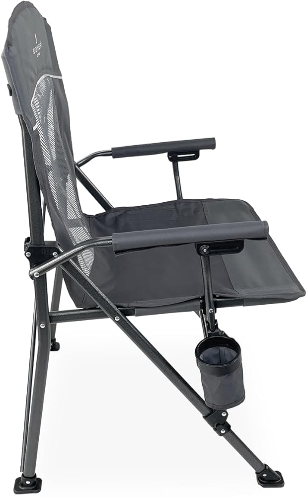 💪SUPPORT: The heavy-duty powder-coated steel frame supports up to 300 lbs, providing unwavering support for campers of all sizes. Measuring 37.5” in height, 24” in length, and 24” in depth when open, it's designed for durability. Our mesh camping chair is heavy duty, fold-away, and travel-friendly.