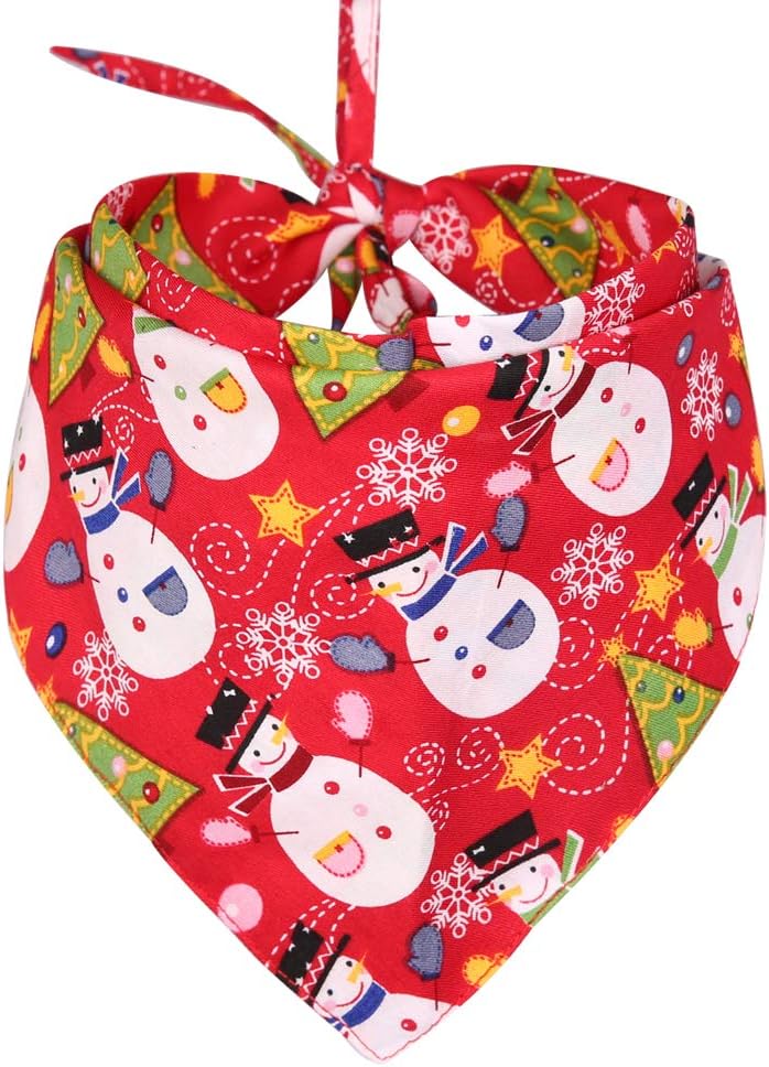 The bandanas have cute print, you can found Christmas elements, such as snow,Christmas snowman,christmas trees,Christmas deer etc, it's born for Christmas Day and can be a very cute gifts for dog in Christmas festival