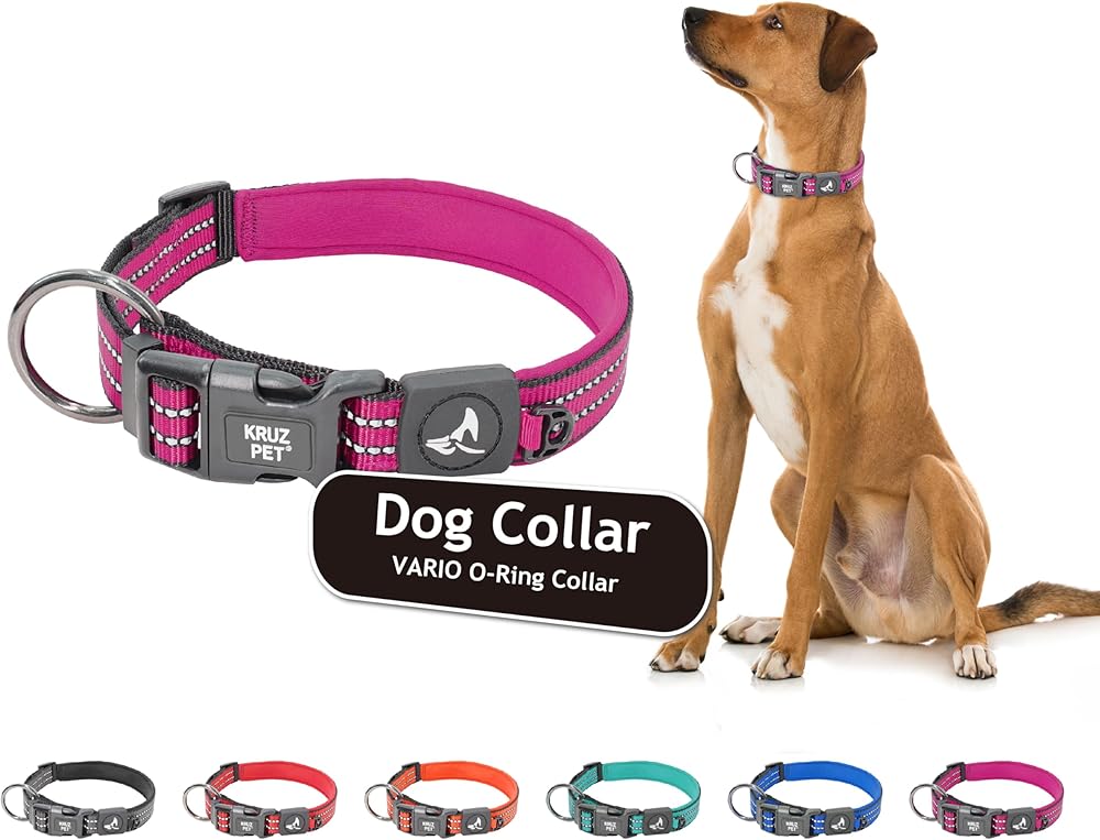 Kruz Dog Collar for Small Dogs (Width- 5/8", Length - 15"-17") Reflective Adjustable Pet Neck Band with Soft Padding, Heavy-Duty O-Ring, 100% Nylon Strap (Raspberry Pink, Small)