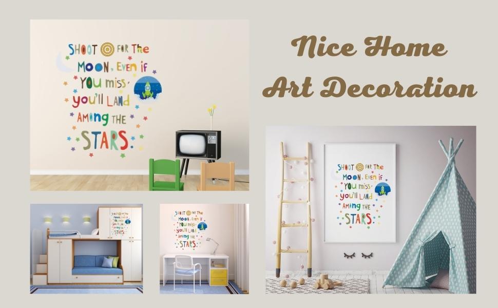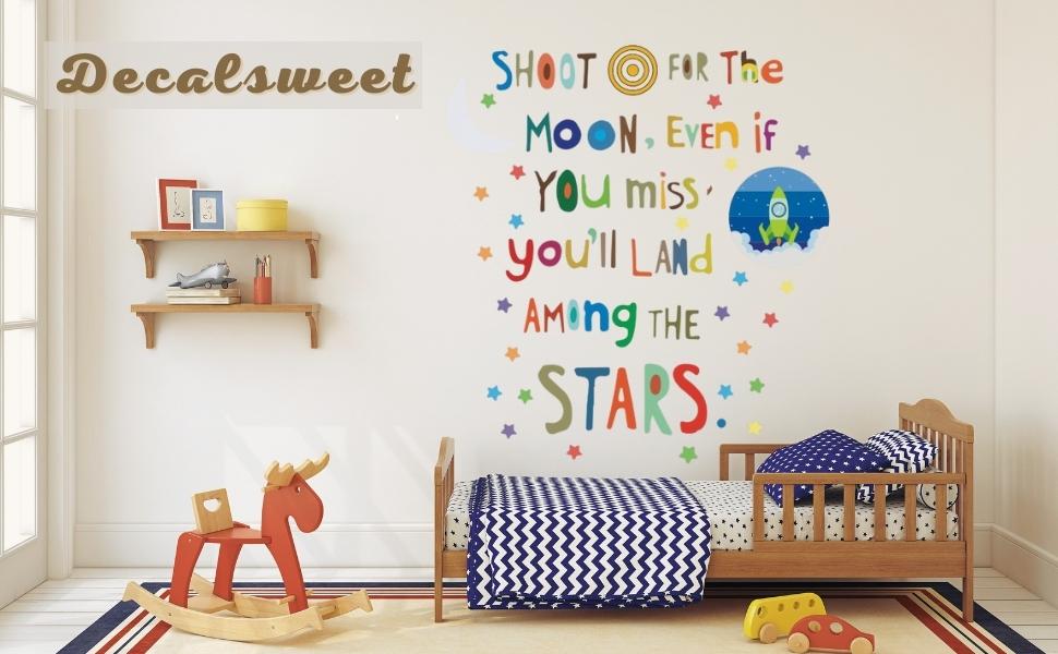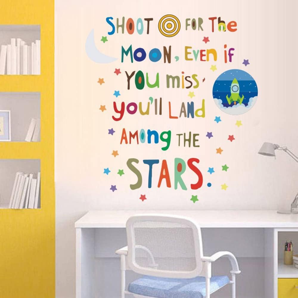 Package: Set includes: stars, crescent moon, rocket and positive phrase, perfect for kids bedroom, playroom, nursery, bathroom, living room, classroom.