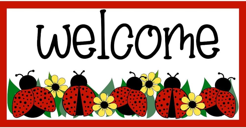 Welcome Ladybug Sign, Front Door Decoration, Wreath Accessory Metal Sign Art Tin Home Kitchen Decor 6x8inch
