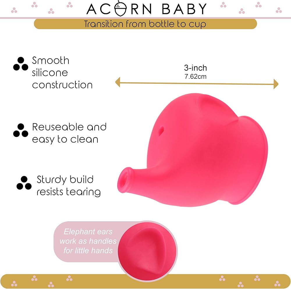 First steps are a magical moment. Camera in hand, you capture the moment and innocently believe your little one's newfound mobility is a gift. Quickly though, you realize that mobility leads to a trail of messes. Rely on these Silicone Sippy Top Adapter Lids to prevent excessive messes as your little boys and girls improve their skills. This elephant-shaped silicone sippy lid with a 0.5-inch (1.3cm) diameter elephant trunk is an entertaining way to transition from bottles to real cups. The wide mouth on each spill-resistant lid fits snugly around the rim of most cups. With its ability to collapse, the snug spout lids also allow for easy storage. [Have an Elephant-astic Time]: Give your little ones lunchtime smoothies and bedtime milk while protecting from spills with these Reusable Silicone Cup Lids; Unique elephant shape is exciting and fun and adds function by providing ear-shaped handles and a trunk-shaped spout [Choose Your Color]: Choose 1 reusable sippy cup cover in blue, green, yellow, orange, or red, or choose the 5-pack of reusable sippy cup lids that includes all of these colors [Transition from Bottle to Cup]: Store-bought sippy cups are awkward to store and wash; Make life easier when you convert your cups to homemade training cups with these jar sippy cup lids [Fit Any Cup Sizes]: Universal sippy cup lid stretches to fit cups from 2.1 to 3.5 inches (5.3 to 8.9cm) in diameter; Silicone material ensures a strong grip around the cup's rim to prevent leaks [Quick Cleanup]: Soft spout sippy cup lids withstand hot and cold temperatures and are safe for liquids; Hand wash silicone lids for cups or place in top rack of dishwasher California Residents Prop 65 warning:Products may contain a chemical known to the State of California to cause cancer, birth defects or other reproductive harm. This product has a manufacturer warranty against defects in materials and workmanship for a period of ONE (1) YEAR from the date of original retail purchase. See our Seller Return Policy for more details.