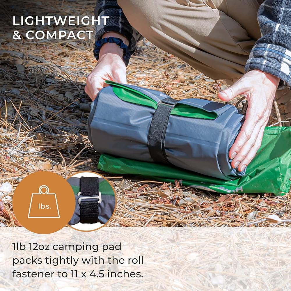 • معدات ومعدات التخييم: وسادة التخييم الخاصة بنا بوزن 1 رطل و12 أونصة و76 × 24 بوصة يمكن طيها حتى حصيرة مدمجة مقاس 11 × 4.5 بوصة؛ يمكن وضعها بسهولة في أي حقيبة تخييم، مما يجعلها إضافة رائعة لمعدات حقيبة الظهر الخاصة بك