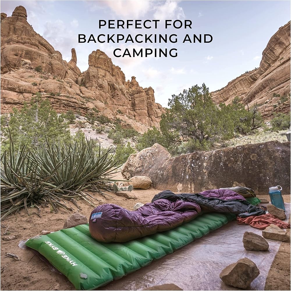 • وسادة تخييم قابلة للنفخ: قم بتفريغ بساط النوم هذا بسرعة باستخدام صمام مدمج وتفريغ سريع وتعديل دقيق وقضاء وقت أقل في التعبئة؛ يتم تضمين كيس المضخة مع سجادة التخييم هذه