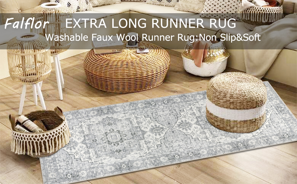 【Non-Slip Durable Carpet】This rug runner with non skid rubber backing,makes it well skid resistance to firmly grasp the ground without worrying about slipping,avoid scratching the floor.The surface of long carpet runner is made of soft and comfortable imitation cashmere material, with soft and skin friendly characteristics,this soft runner rug yet stand up to high traffic, which is comfortable, warm and durable, providing great comfort for your bare feet