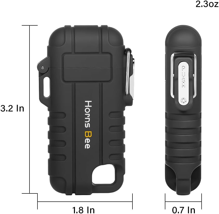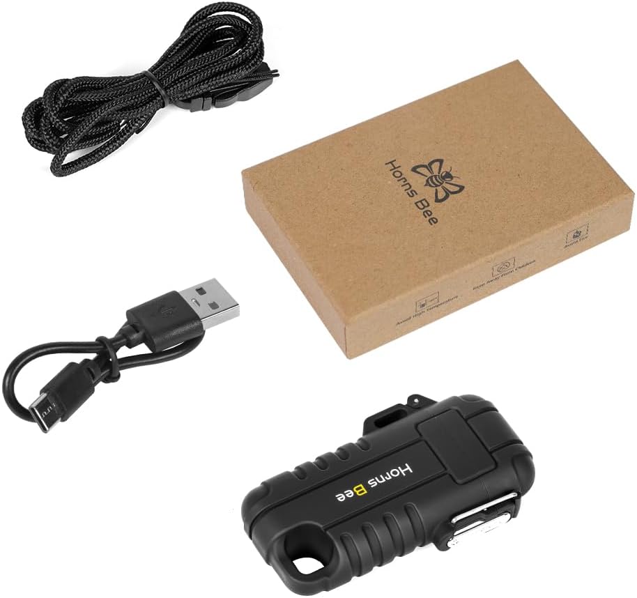 Horns Bee Electric Plasma Lighters - Includes the waterproof lighter, a USB type-c charging cable, and a carrying strap.