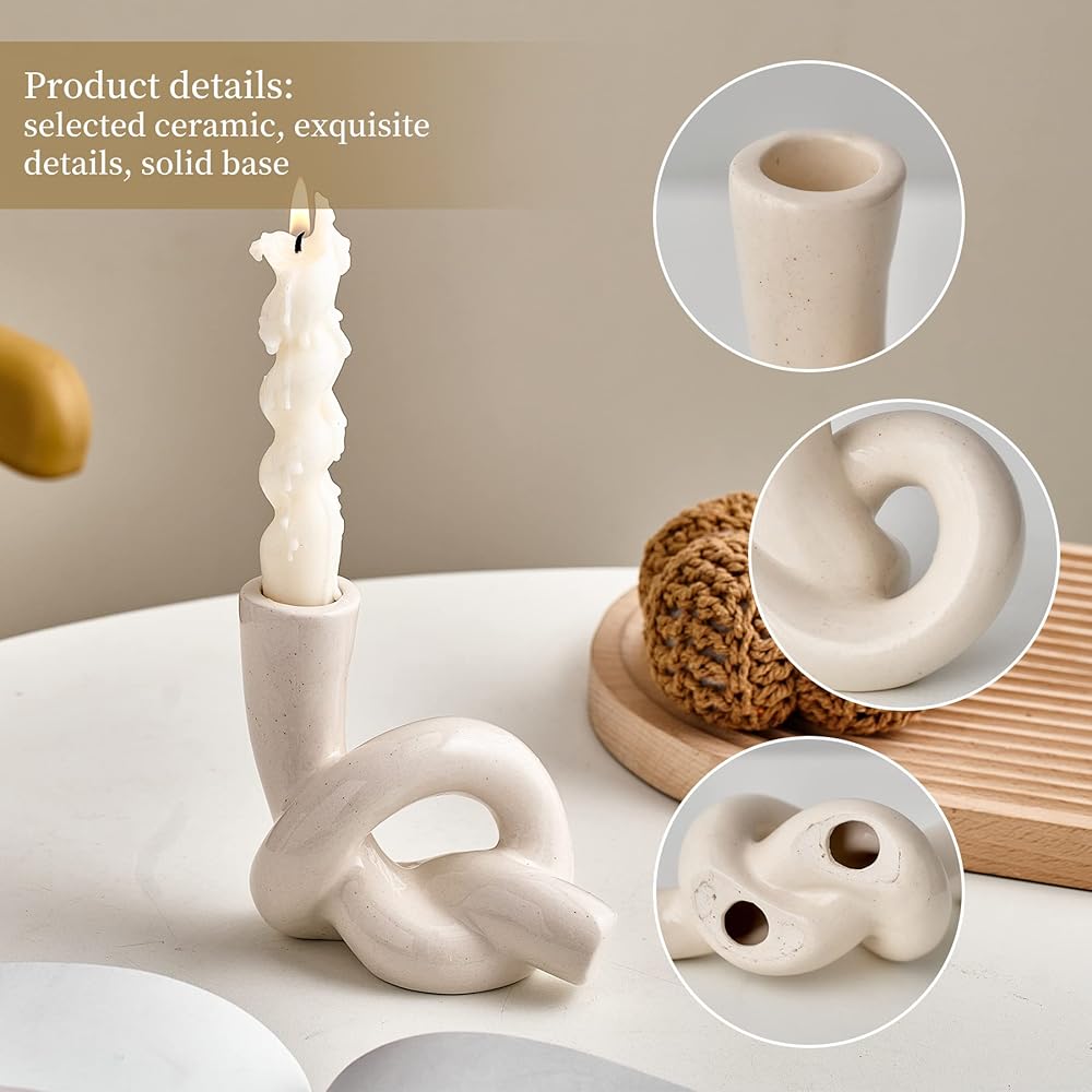 Moral and Design: The designer uses a romantic design concept to outline the lines with interweaving between them, signifying that a good life is intertwined with your life like a candle holder, This unique candle holder is made of sturdy ceramic, which is environmentally friendly and healthy and long-lasting.
