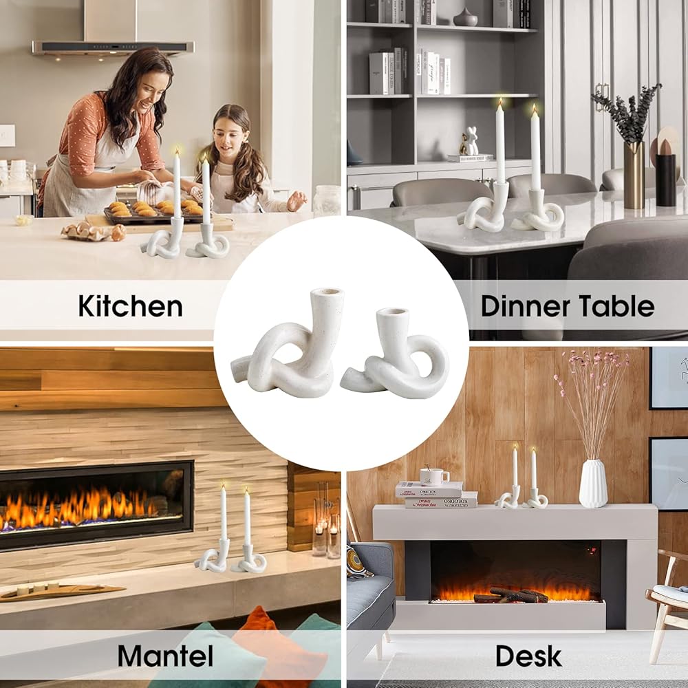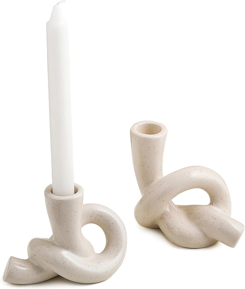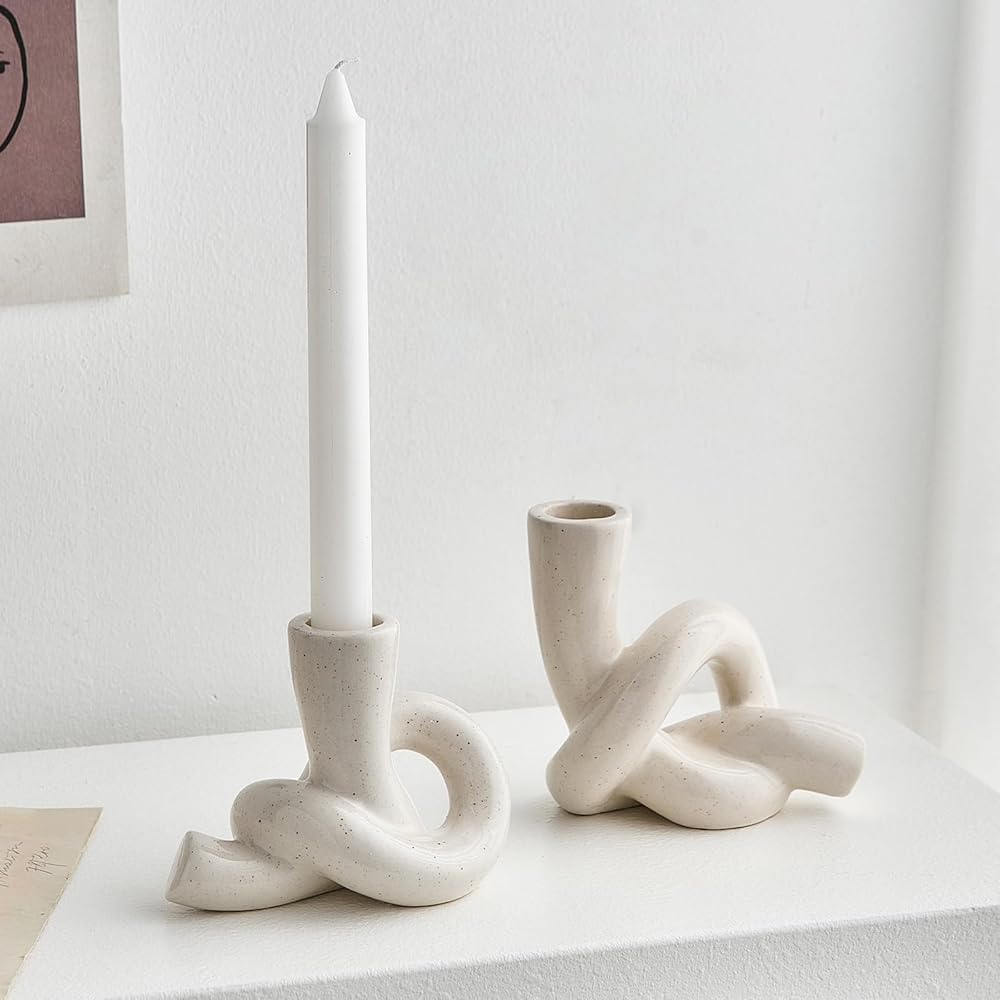 Ceramic Candle Holder Set of 2 for Modern Home Decor, Abstract Art Taper Candle Holder Decor, Table Centerpiece Candle Sticks Holder Decor for Table Centerpiece Living Room Dinning Kitchen Mantel