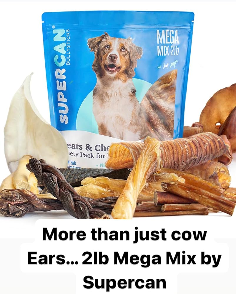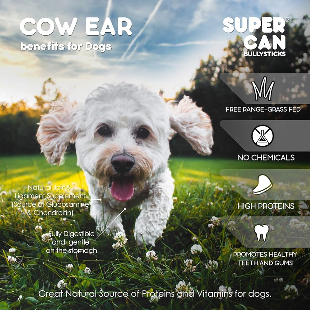 SUPER CAN BULLYSTICKS Natural Whole Cow Ears for Dogs (15 Count) | All Natural Angus Beef Ears | Easily Digestible High Protein Dog Snacks for Puppies, Large & Senior Dogs