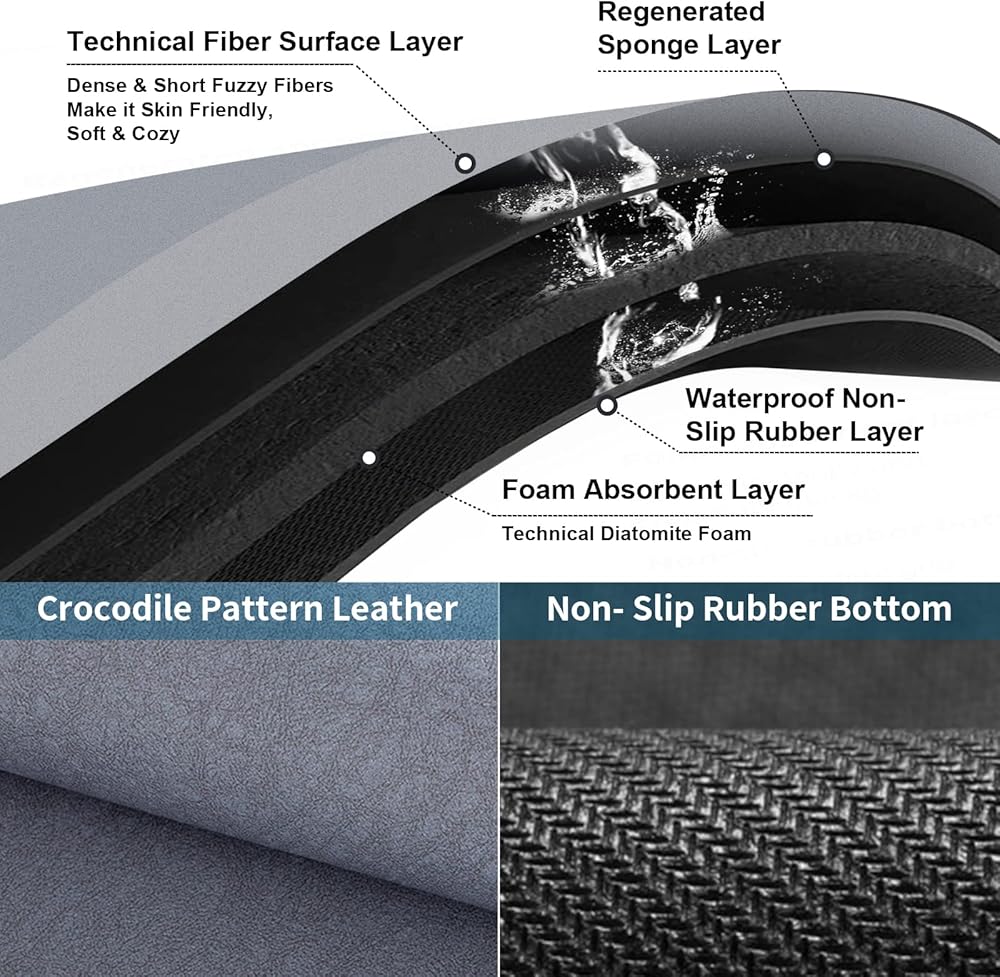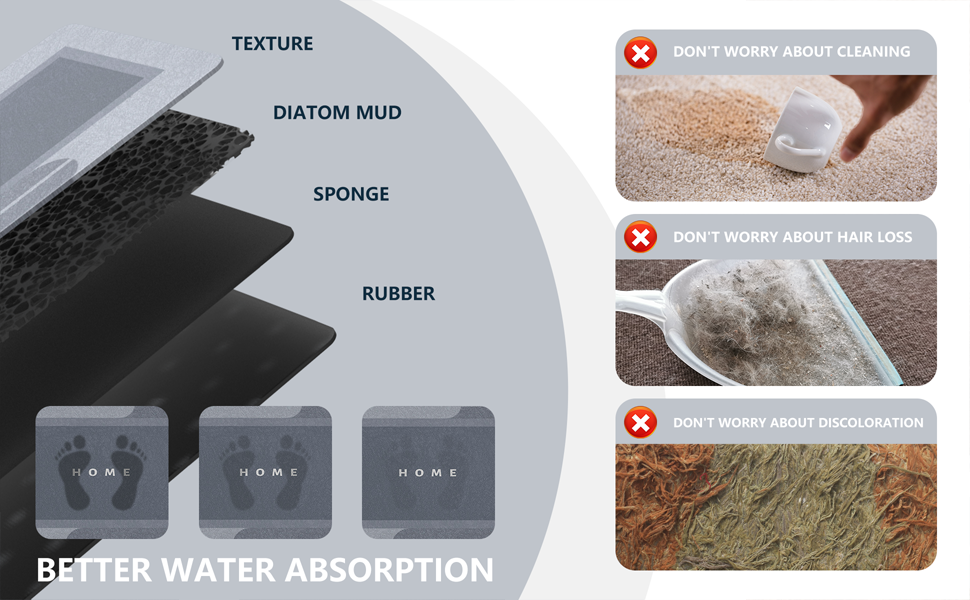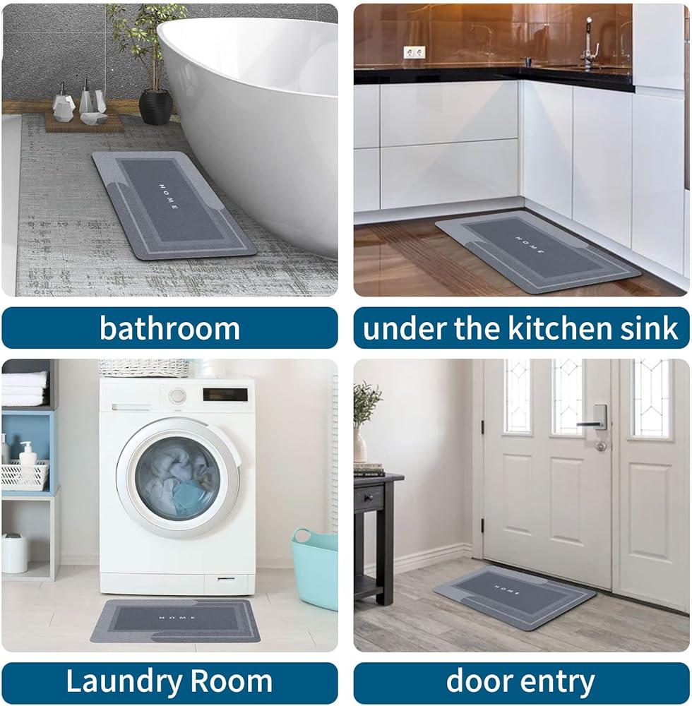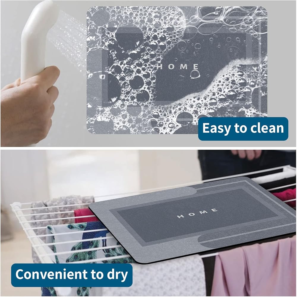 🇺🇸【SUPER ABSORBENT BATH MAT】: These bath mats for bathroom are thin and comfortable which are made of technical diatomite materials. They can absorb as much water as possible from your wet feet after shower. This super absorbent bath mat will make water be absorbed extreme quickly that you will see water droplets disappear very quickly on the surface within 1~2 seconds (Compared to other most will be more than 3~5 seconds). We have confidence this is a real super absorbent bath mat.