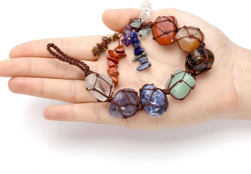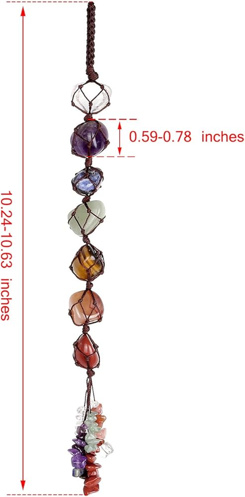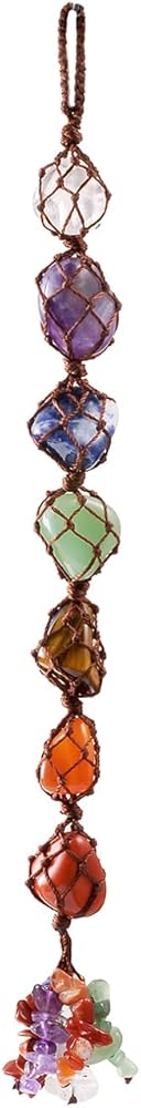 7 Chakra Gemstones Rope Wrap Hanging Ornament With Chip Stones Tassel, Good for home/indoor decor or chakra crystal healing, It is said to improve people luck as well as an excellent 7 chakra hanging ornament in relationship. Put it in your living room,bed room or office. It will help you attract wealth and prosperity, success, and all good things.