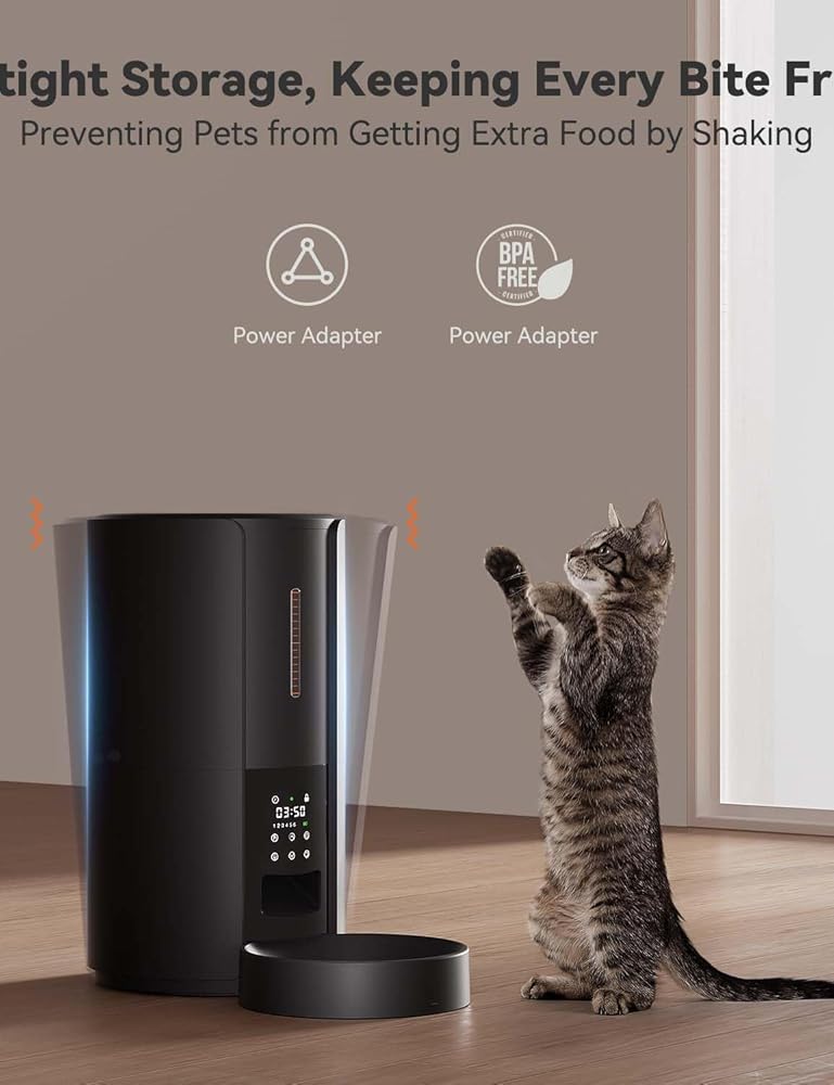 Upgrade Pet-proof: Secured twist-lock lid at the top of the cat feeder helps prevent pets from accidentially tipping over the food, and child lock feature helps avoid messing up the program through unintended touches. Both features help make sure your pets won't get the food by themselves until the scheduled time.
