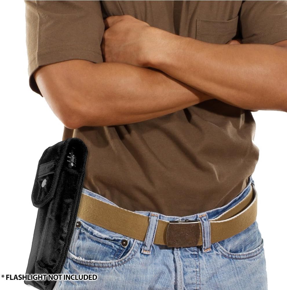 يتميز بوجود رفرف يدوم طويلاً مع شريط فيلكرو للغلق بكبسولة. حلقة حزام سريعة الفصل تسمح للمستخدم بتركيب أو إزالة الجراب دون الحاجة إلى إزالة الحزام. يناسب معظم المصابيح اليدوية كبيرة الحجم والأدوات والسكاكين. مصنوع من النايلون شديد التحمل للمساعدة في الحفاظ على حماية أدواتك من الأضرار.