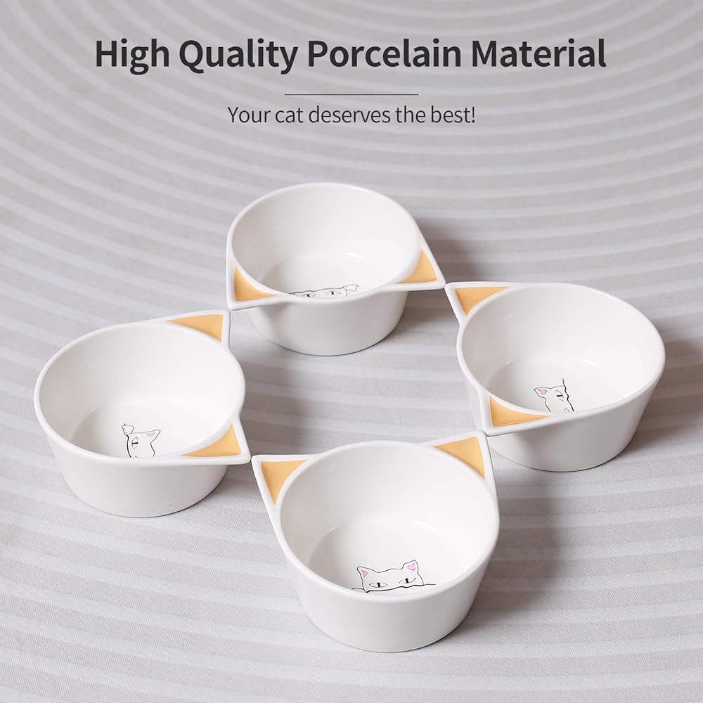 【Food-grade Material】- TAMAYKIM cat bowls set are made of premium porcelain, more healthier than plastic or stainless cat bowls.