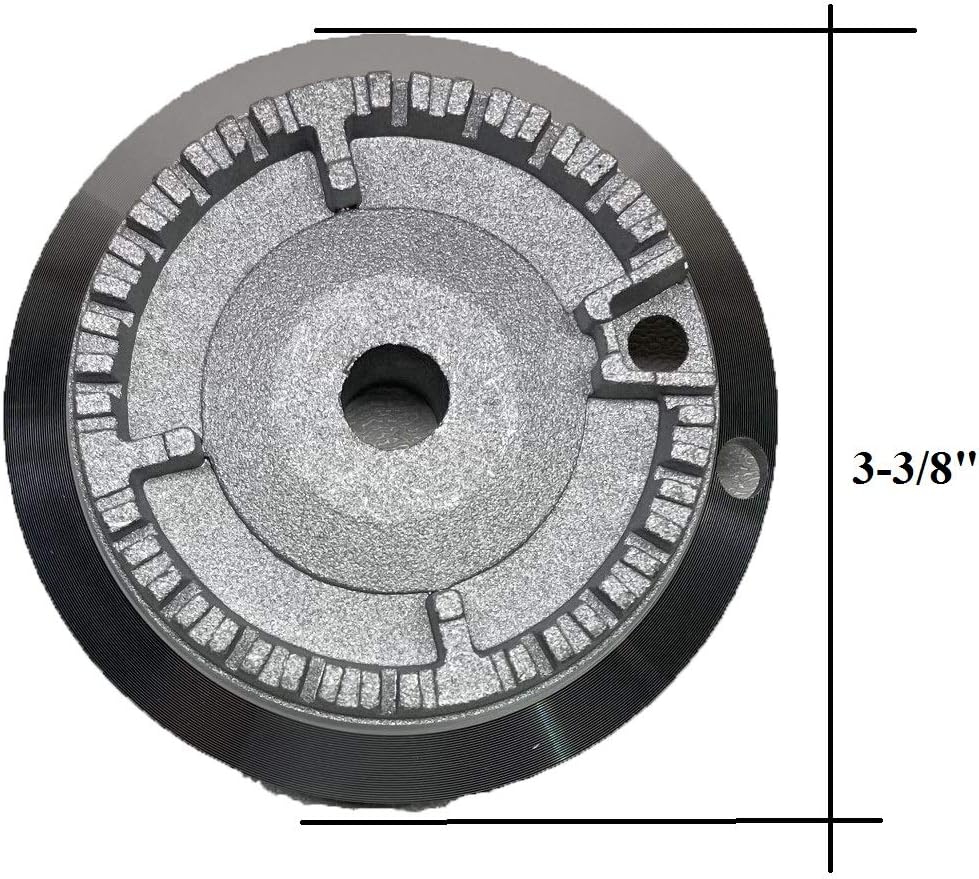 Aluminum Burner Base, Medium Burner in the Stove (Stove has 1 Small, 1 Medium, 2 Large and 1 Extra Large Burners). External Diameter : 3.25". Includes 1 Burner Cap, Porcelain Finish, Black.