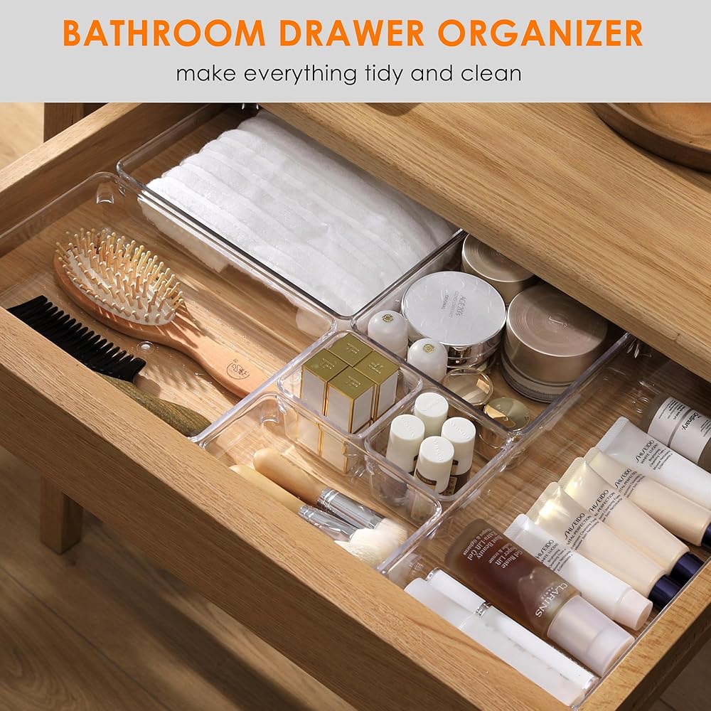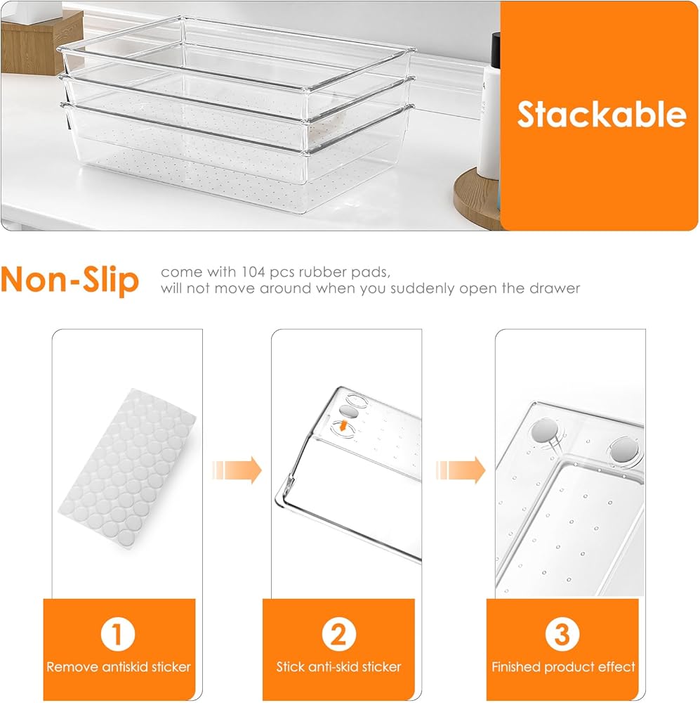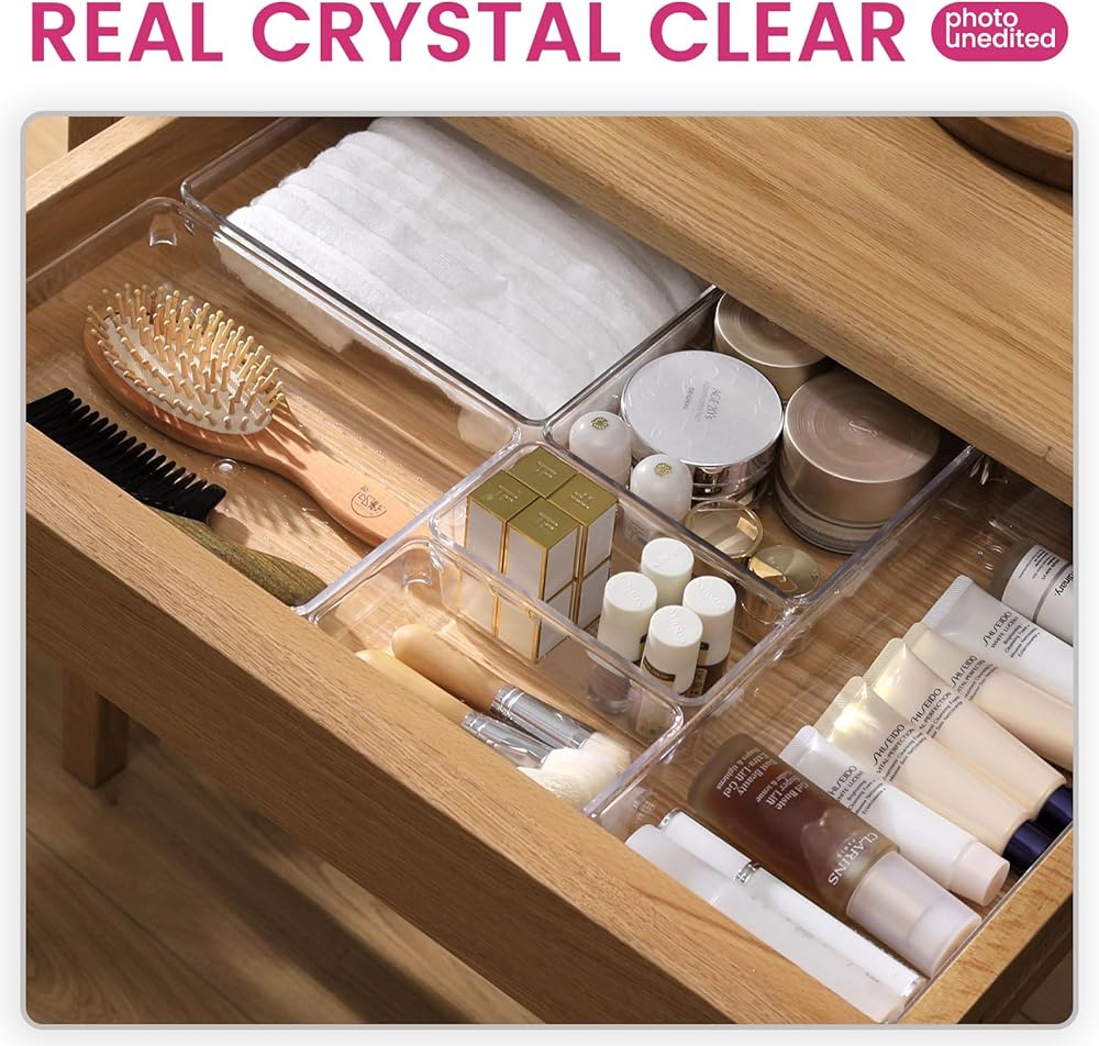【MAINTAIN TIPS】 Our desk drawer storage bins are easy to wipe clean with a damp cloth, ensuring they stay crystal clear and crack-free for years of use. (Do not put into dishwasher.)