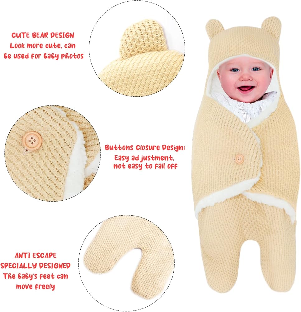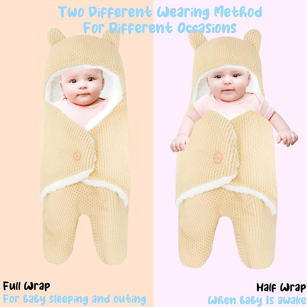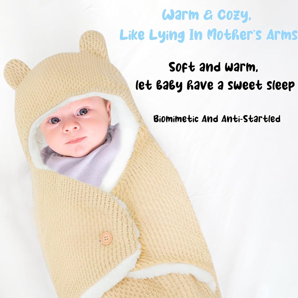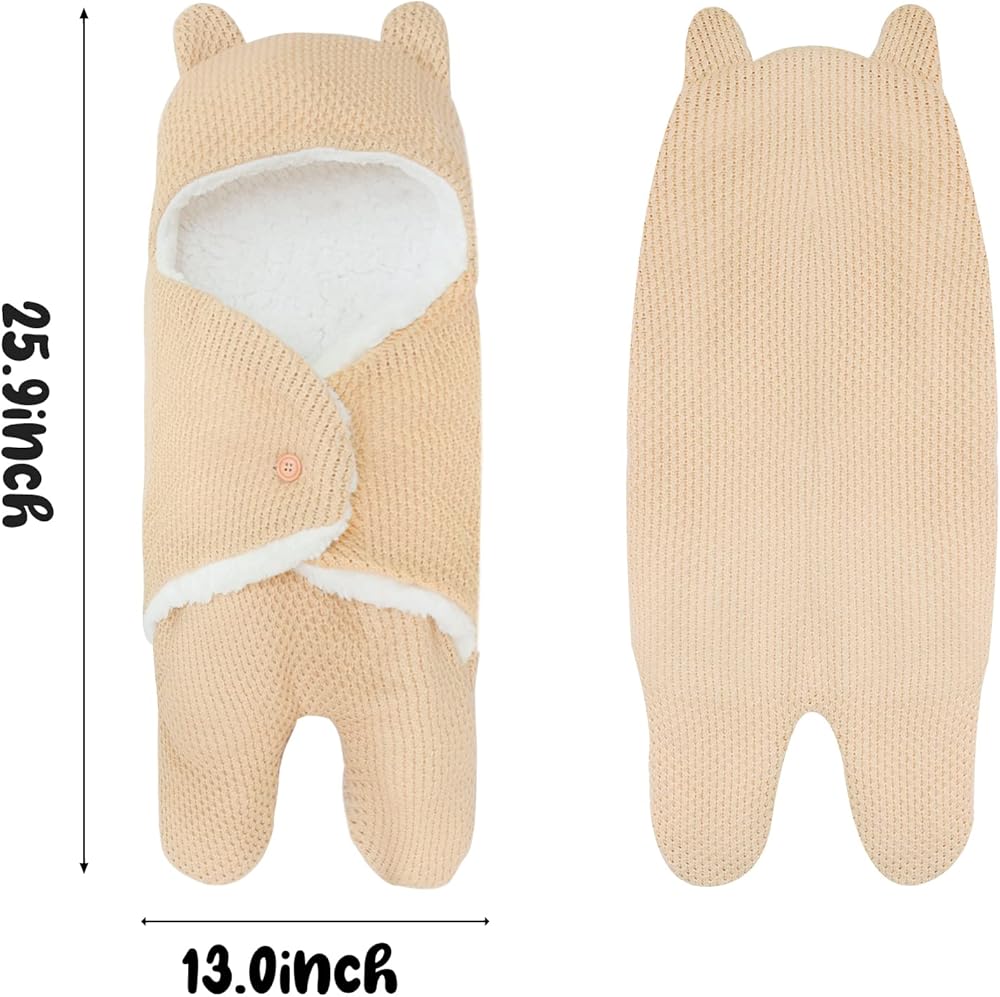 👶【Unique Cute Bear Design 】The bear design swaddle has adorable ears, hooded design, and the soft wing-shaped design on both sides hugs your baby like a mother's arms, it's a must have for your baby. It would be a nice and cute gift for baby boy and girl.