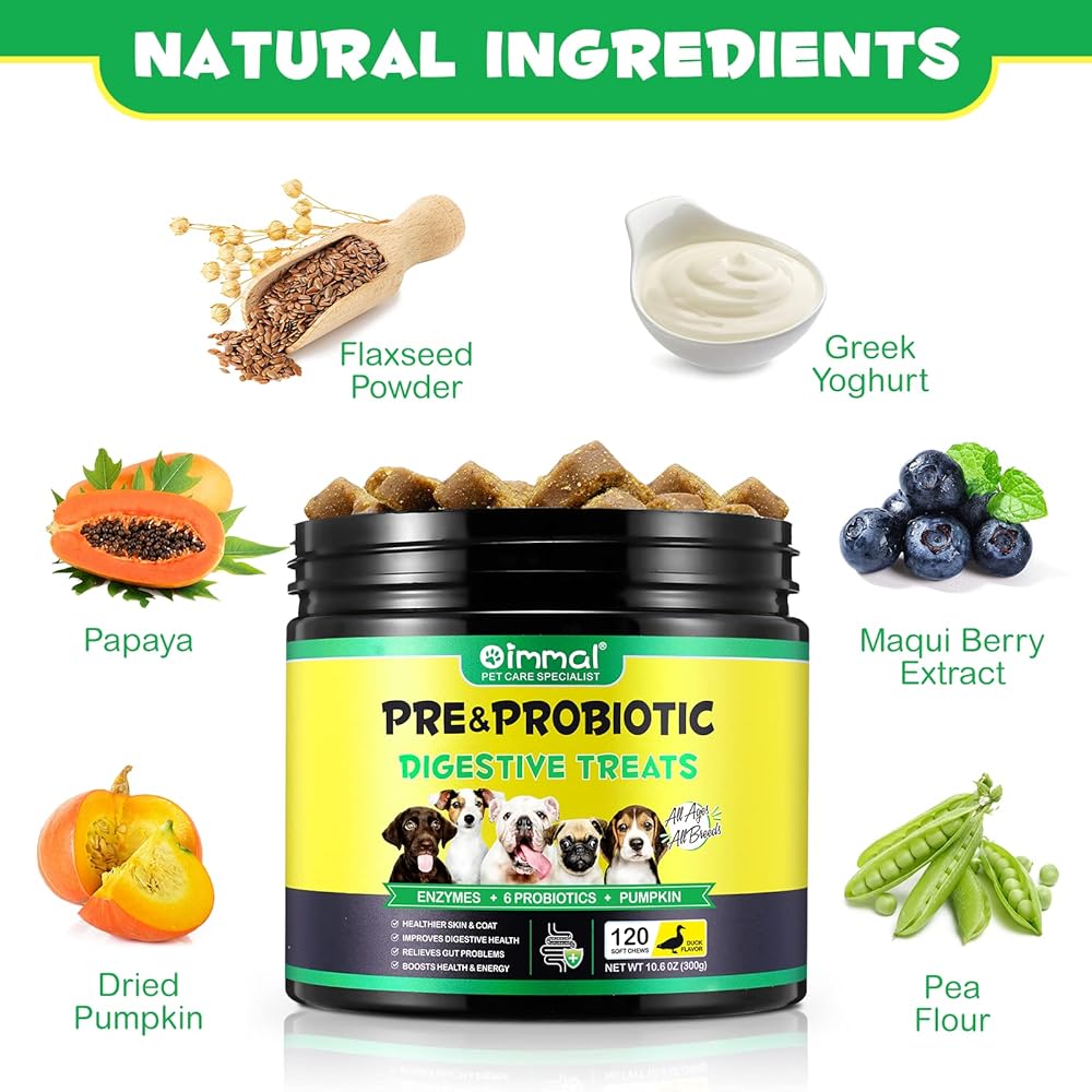 Our 120 Soft Chews Duck Flavor Pre & Probiotic Digestive chews are tasty natural treats for your furbabies which support dog's gut health, digestion and immunity, As pet parents, we love pets as mush as you! We only use natural active ingredients, free from artificial curing agents and preservatives.
