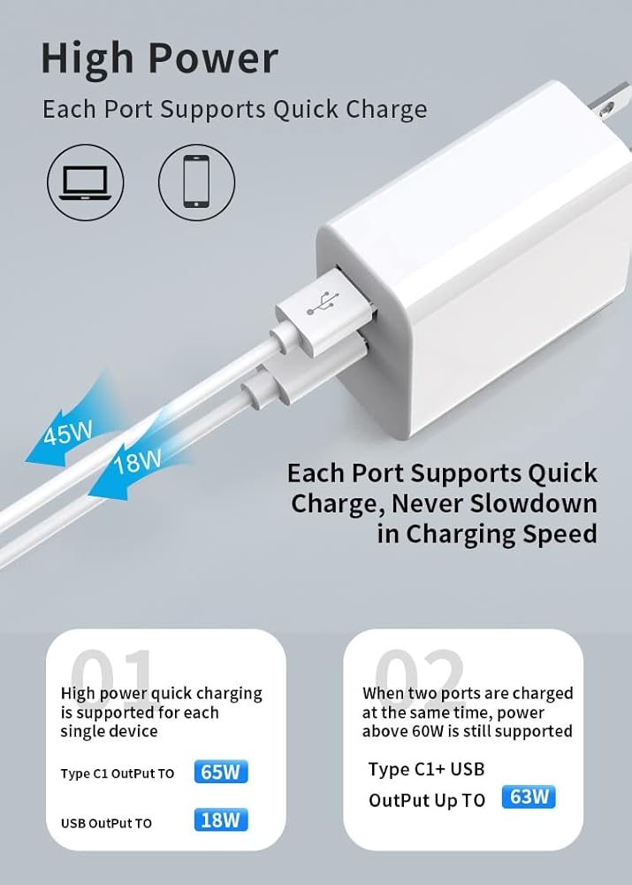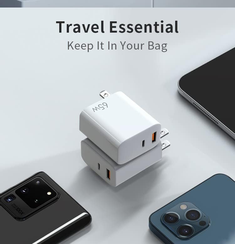 USB C Fast Charger, 65W 2 Port GaN PD&QC USB-C Power Adapter, USB C Wall Charger for MacBook Pro, Air, iPad Pro, Air, Mini, iPhone 14 Pro Max, 13, 12 Galaxy S22 S21 Ultra, Note 10 Plus, Pixel 6, 6 Pro