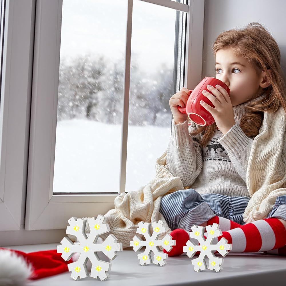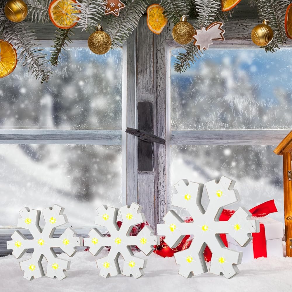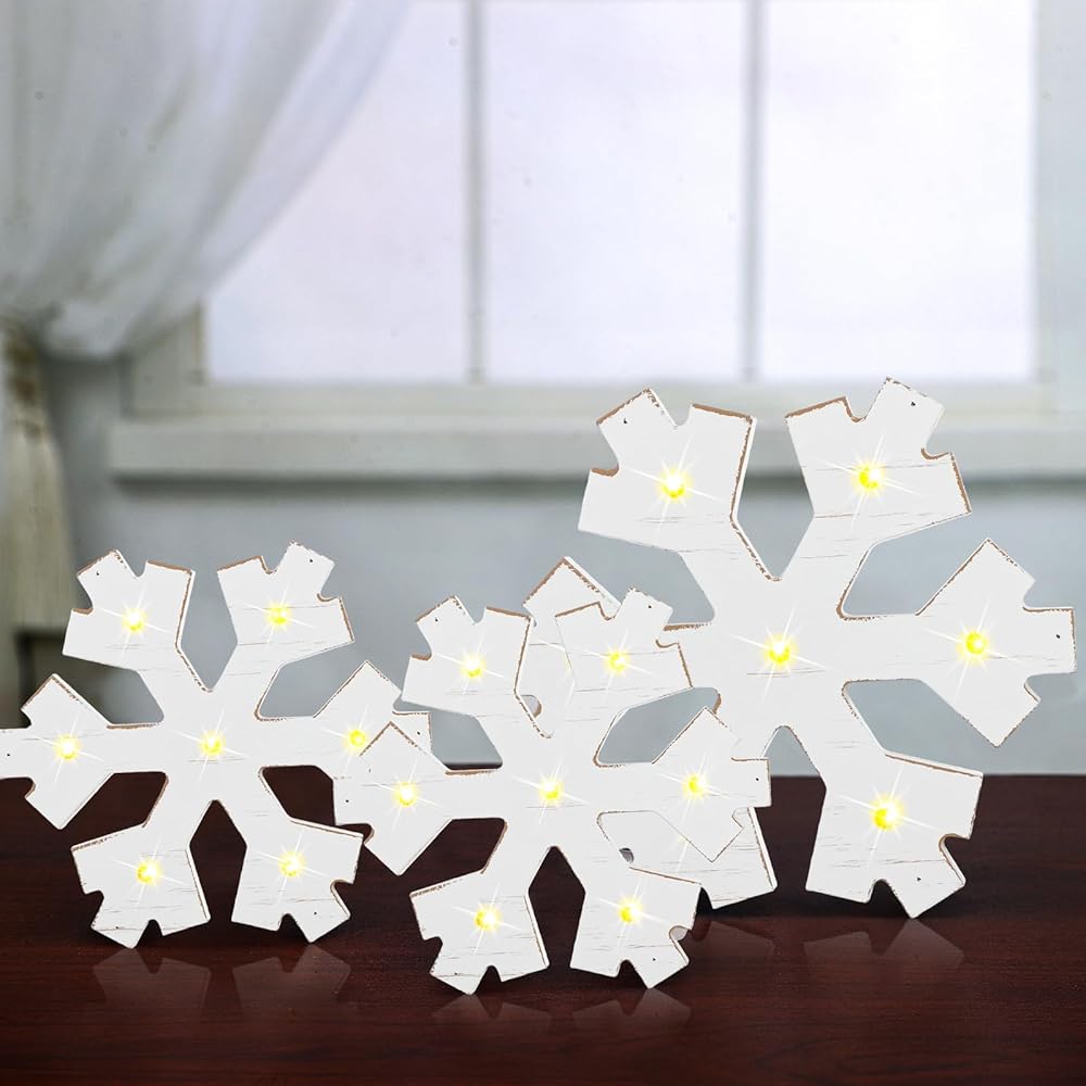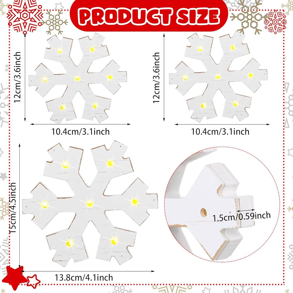 Quality Material and Retro Elegance: made of quality wood, these LED snowflake decorations provide a reliable and robust design; The beautiful retro white color adds to their attraction; They will indeed be an elegant and vintage addition to your winter decor