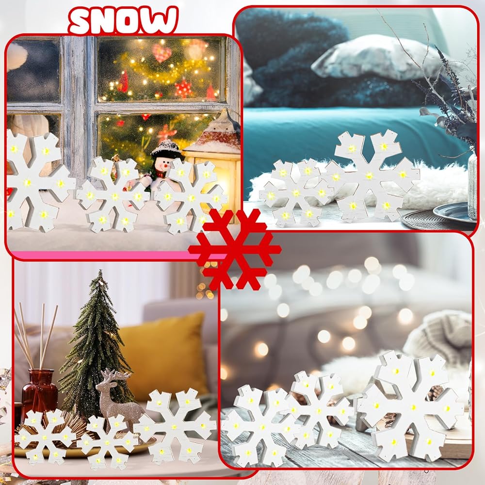 Experience Wide Application Use: these winter decorations for home are not just for the living room; Their unique design and wide applications, make them suitable for the dining room, study, fireplace, Christmas tree, etc.; Use them to create a winter ambiance wherever you wish, the possibilities are endless