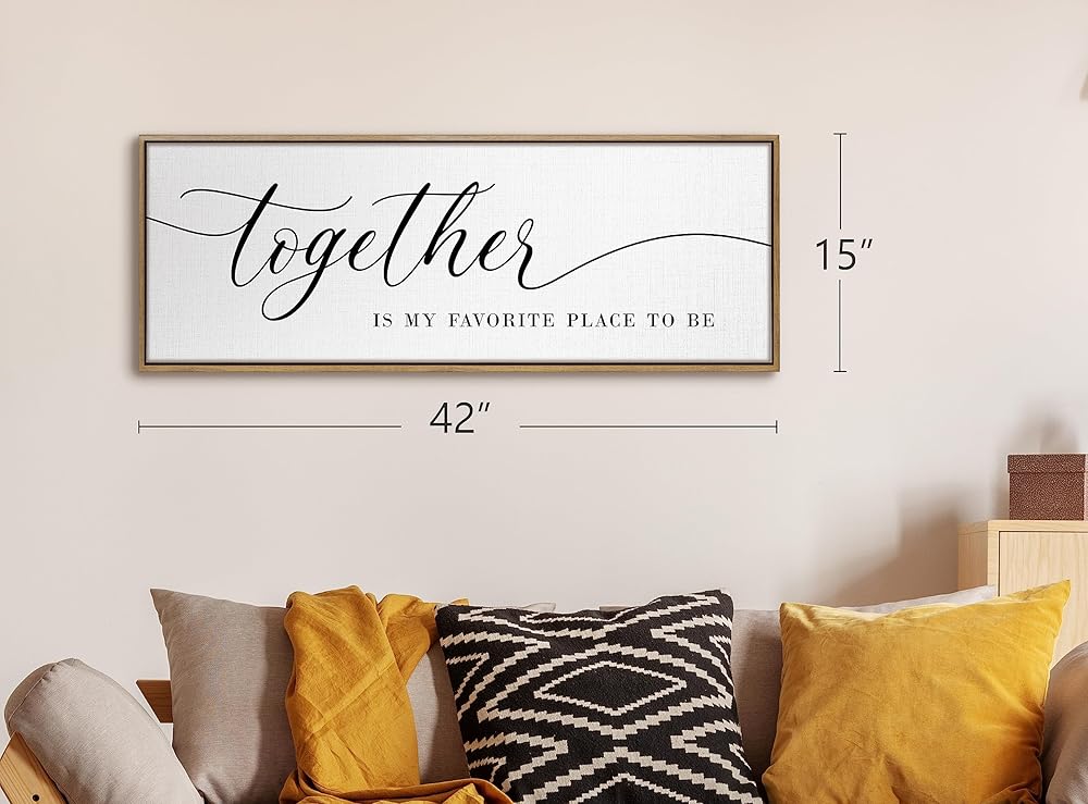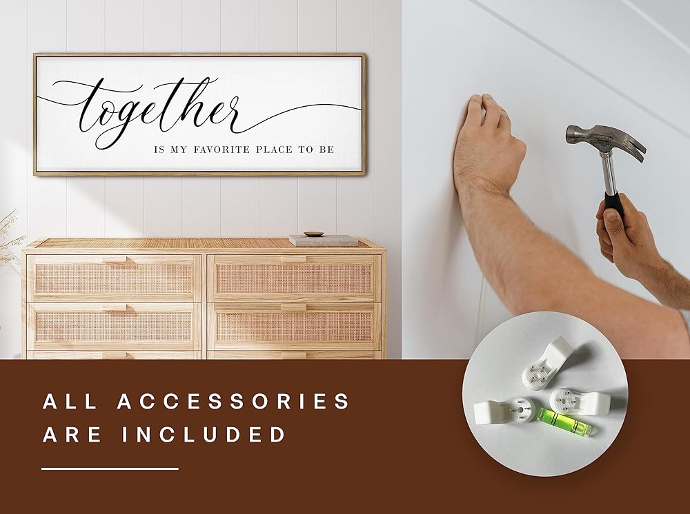 Good Fit And Easy Setup - Measuring 42"X15", this together is our favorite place to be sign framed canvas is the ideal size to make a statement on your wall. It comes with all the necessary hanging accessories included, making it a hassle-free addition to your decor.