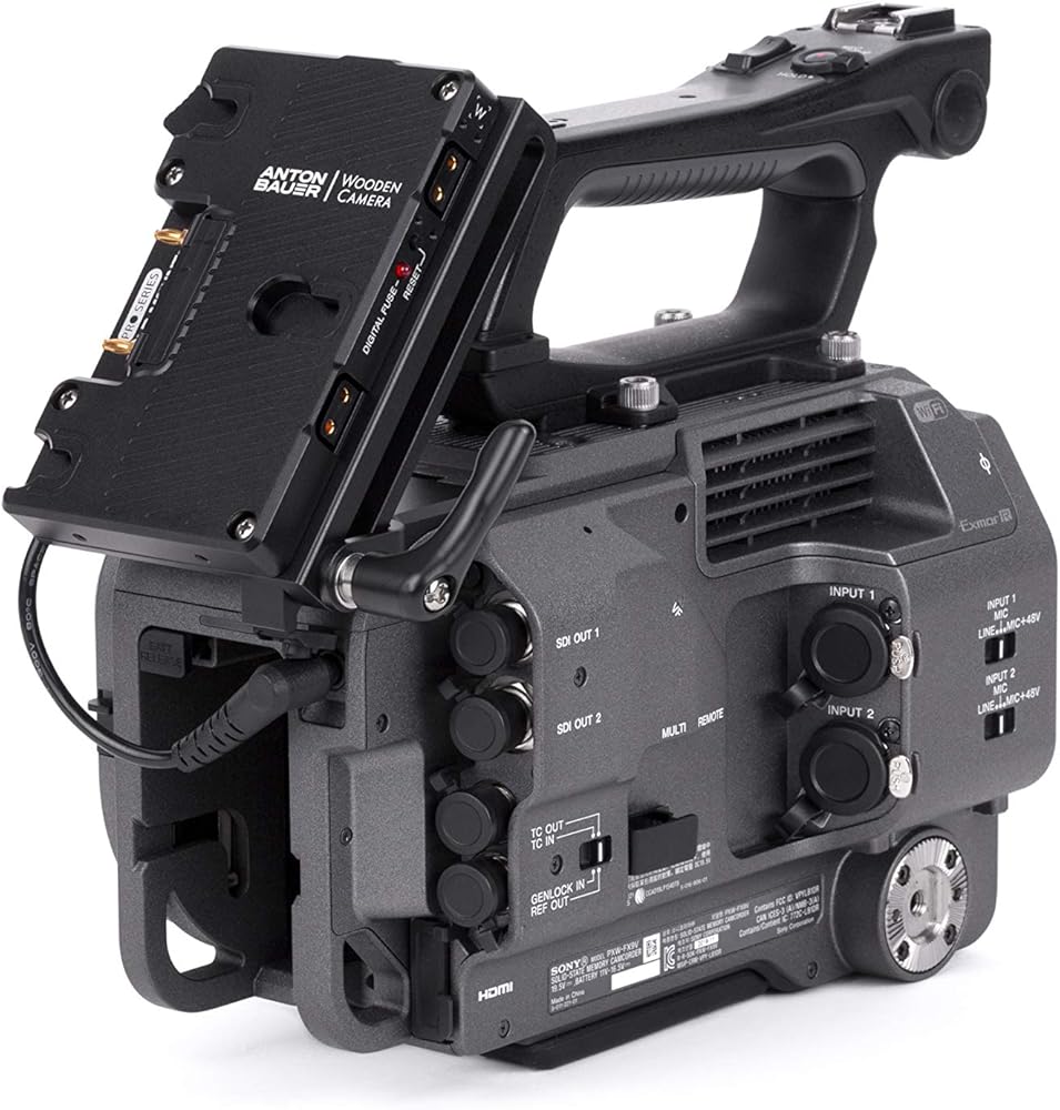 V-Mount Battery Slide Pro for Sony FX9: Attaches directly to the back of the camera without rods, and enables the use of a pro V-mount battery for longer-lasting camera power