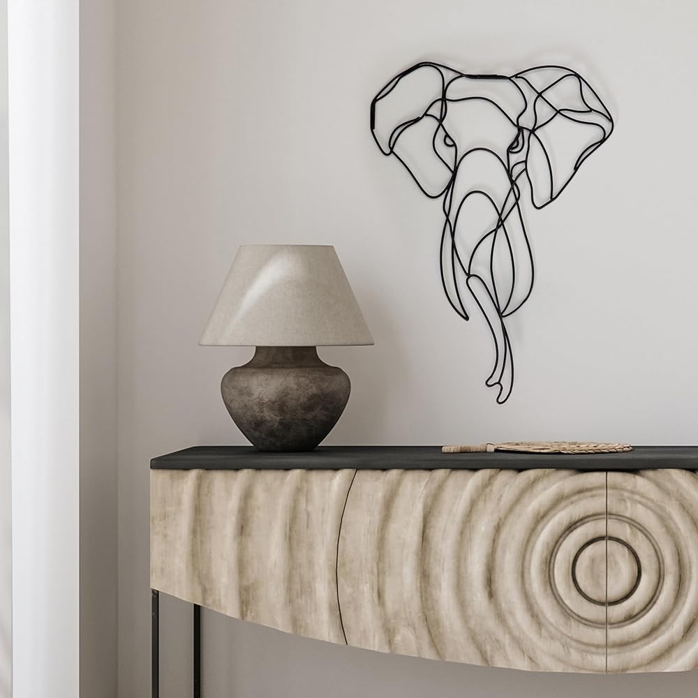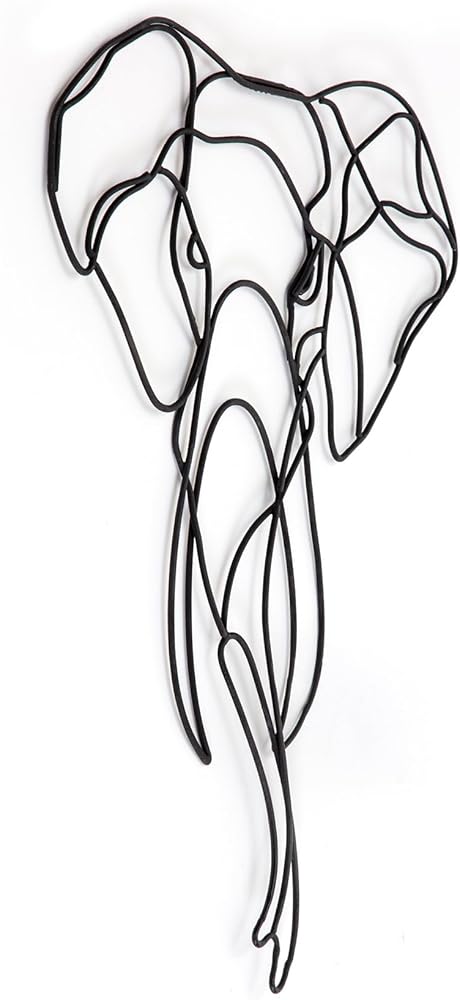 This abstract animal wall art demonstrates the visual impact of strong linework. Several thin iron rods are welded together to create the illusion of one continuous strand shaped into the majestic head of an elephant. The iron has been oxidized until black for greater contrast along your walls. Asha Elephant 20-in Metal Wall Art measures 20-in long by 28-in wide.