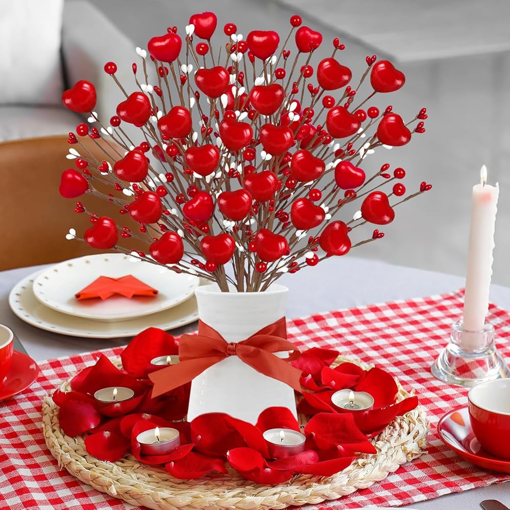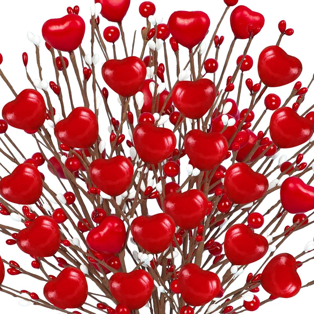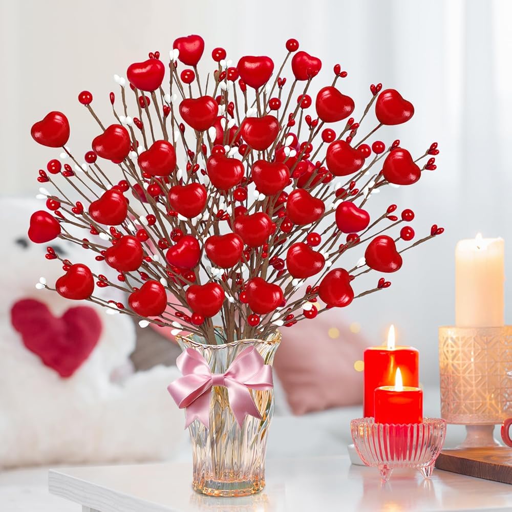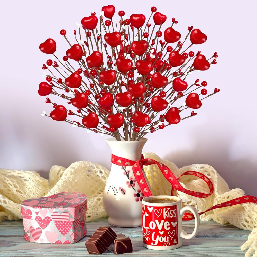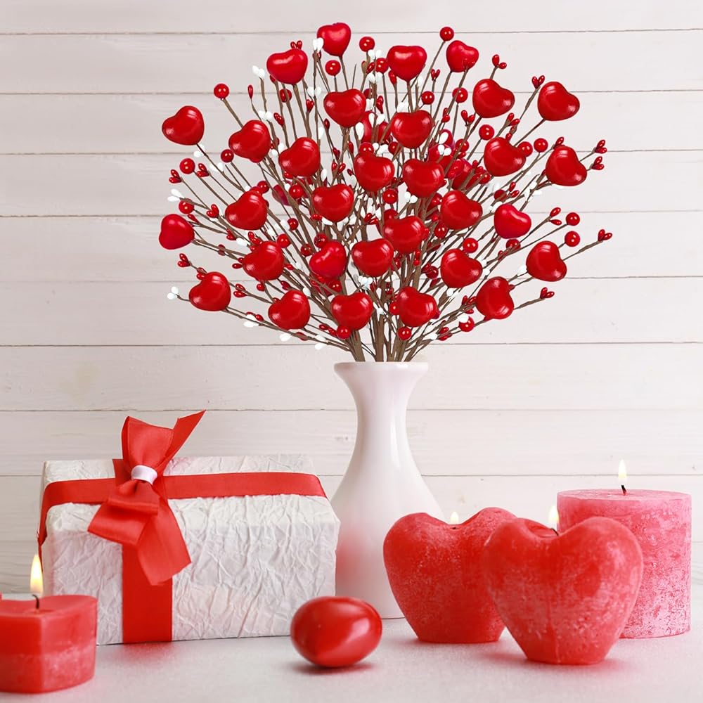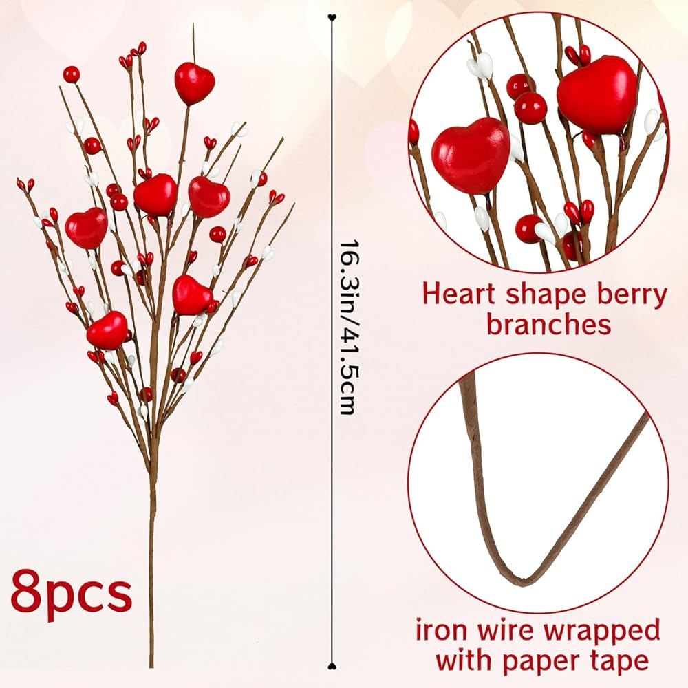 Package Included - Our Valentines Day Decor contain 8 pcs pink berry flowers.These Valentines picks are decorated with pink hearts and lots of white and pink berries.The combination of pink and white will be more suitable for Valentines theme decoration.