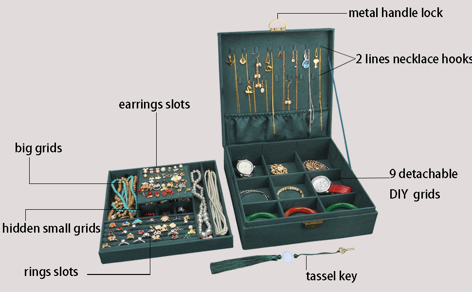 【HOME DECORATION 】------- Vintage eLegant and stylish appearance of detachable womens Jewelry Boxes for Stud Earrings Decor Your Home.Our jewelry box organizers display storage sits beautifully on your dresser, nightstand, bathroom counter or vanity, saving lots of space to make your dressing table and room looking more neatly, NO messy anymore.