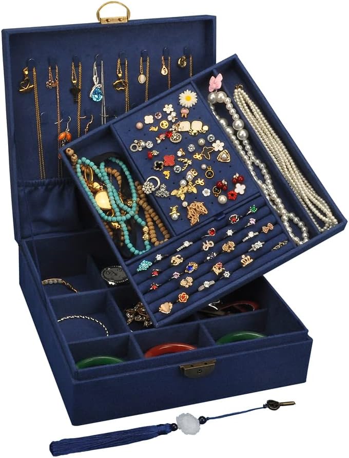 【ALL in ONE LARGE CAPACITY JEWELRY BOX EARRINGS CASE ORGANIZER】------ Our GYJOYERO jewelry ring display case necklace holder are equipped with stackable layers and removable dividers and can Keep Jewelries Clearly in Safety Place. 2 Layers storage jewelry box bracelet organizers has a variety of different sizes of compartments with necklace hooks , earrings slots,ring cases , big rings organizer , ear stud cards and large storage pouches .you'll never worry about tangles, knots, lost pieces with Our Teen Girls earring organizer box stackable .