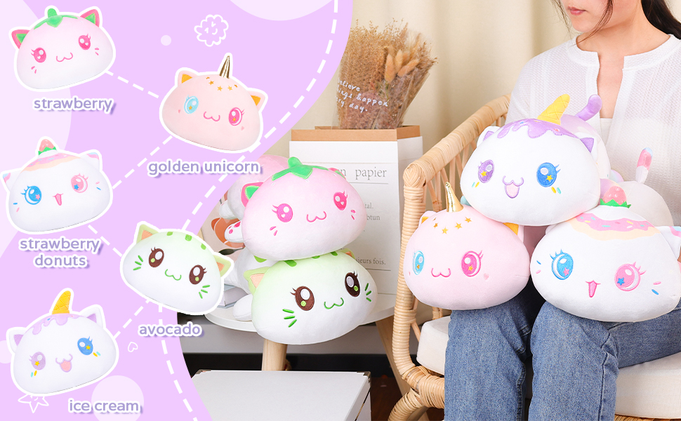 【High Quality】Our kawaii sleep plush pillow is crafted from stretchy super soft fabric and filled with plump pp cotton. Delicate feel, not easy to deform.
