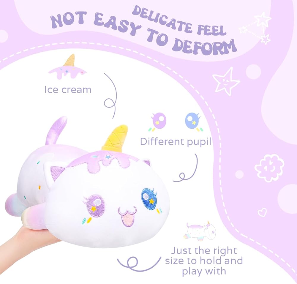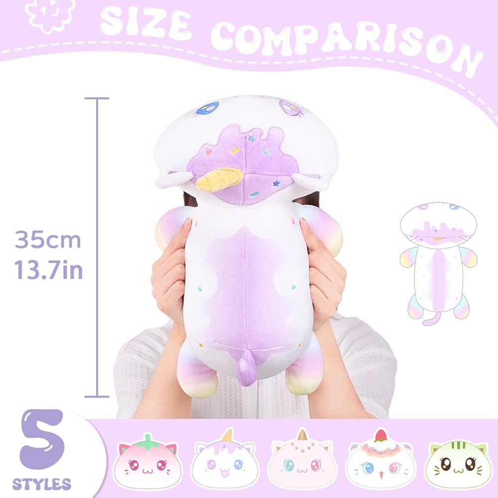 【Size】Kawaii cuddly cat plushie is 13.7", the perfect size for embracing!