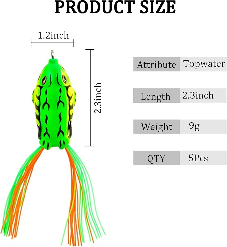 3D Frog Fishing Lures: Soft topwater lures feature hollow rubber body frog with 2 hidden hooks, bright colors with 3D eyes to attract big fish. Simulation color matching, can be very good to confuse and attract the fish in the water.