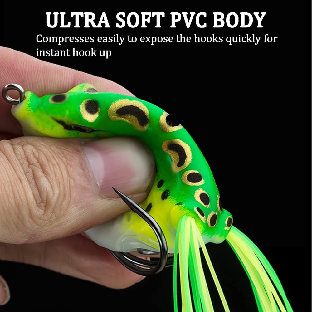 Double Needle Point Hooks: The frog lures feature incredibly sharp, double needle point frog hooks for quick penetration and a strong hold, providing excellent hooking action, improve chances of keeping fish on
