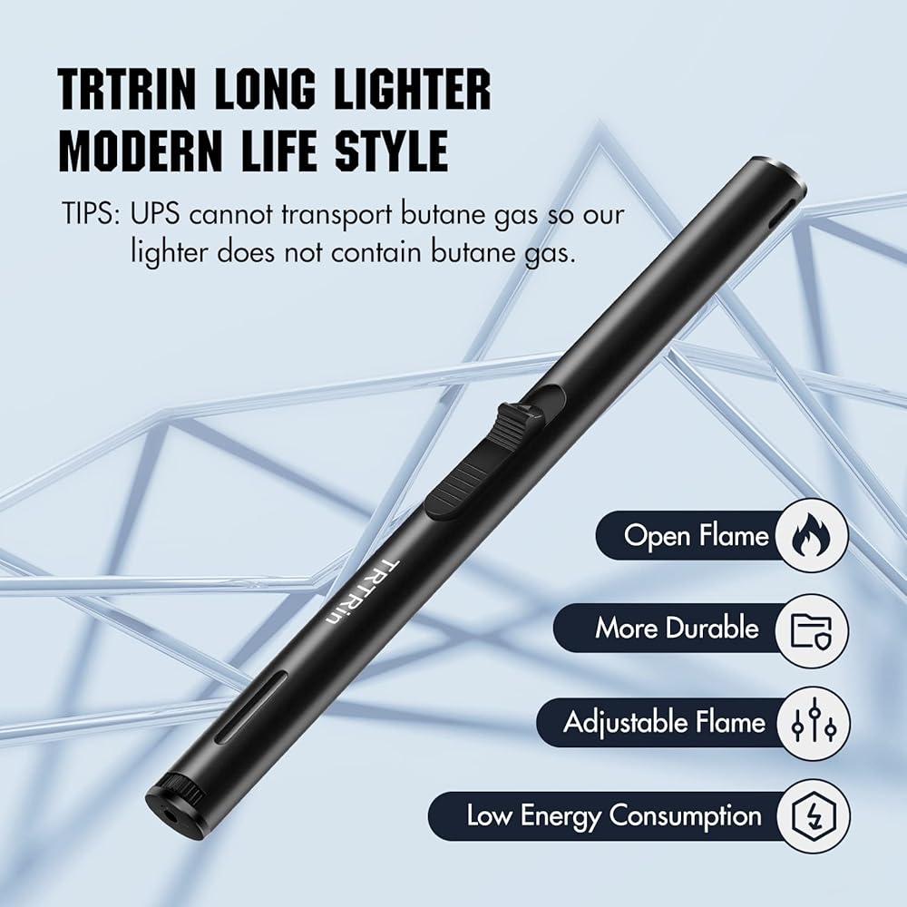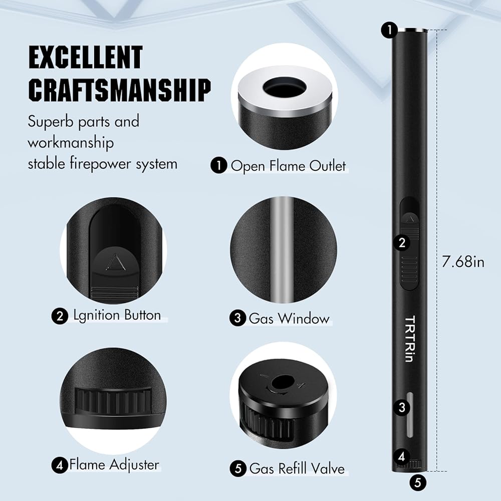 🔥【7.68 INCH PENCIL TORCH LIGHTER】: 7.68 inch TRTRin refillable butane lighters, Compact and Portable, Perfect for your Indoor and Outdoor Activities. The long neck design protects you from burning your hand. You can use it according to the intended applications such as grill, candle, BBQ, camping, baking, or DIY jewelry. You can put these TRTRin lighters is stored in a gift box. A great gift idea for Friend, Christmas Day, Birthday.