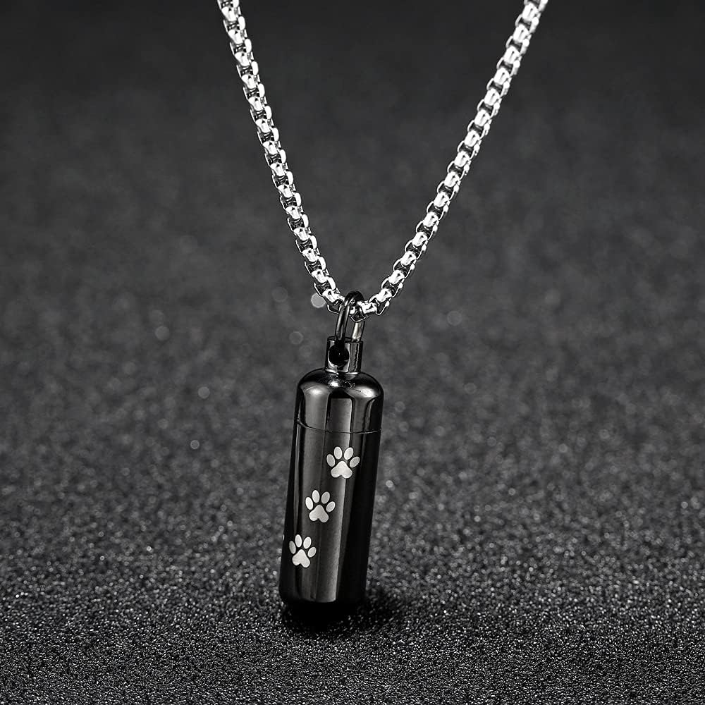 Stainless Steel Capsule Pill Necklace For Ash, Keepsake Memorial Urn Cremation Pill Pendant Necklace with 18 Inch Chain Killing Fit