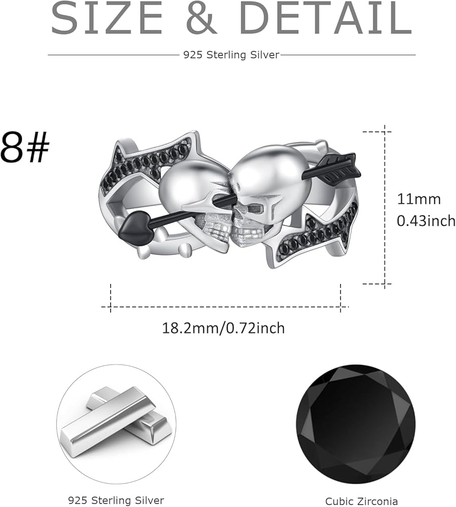 * Skull Bat Design *- Made of sterling silver and cubic zirconia, lead-free, mercury-free, nickel-free, hypoallergenic, ideal for sensitive skin, compact and comfortable to wear, adjustable size fits any of your fingers.