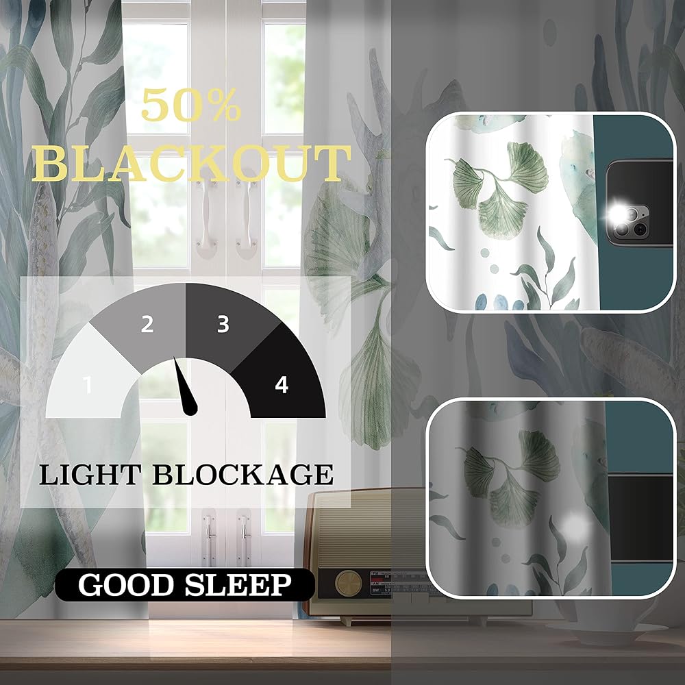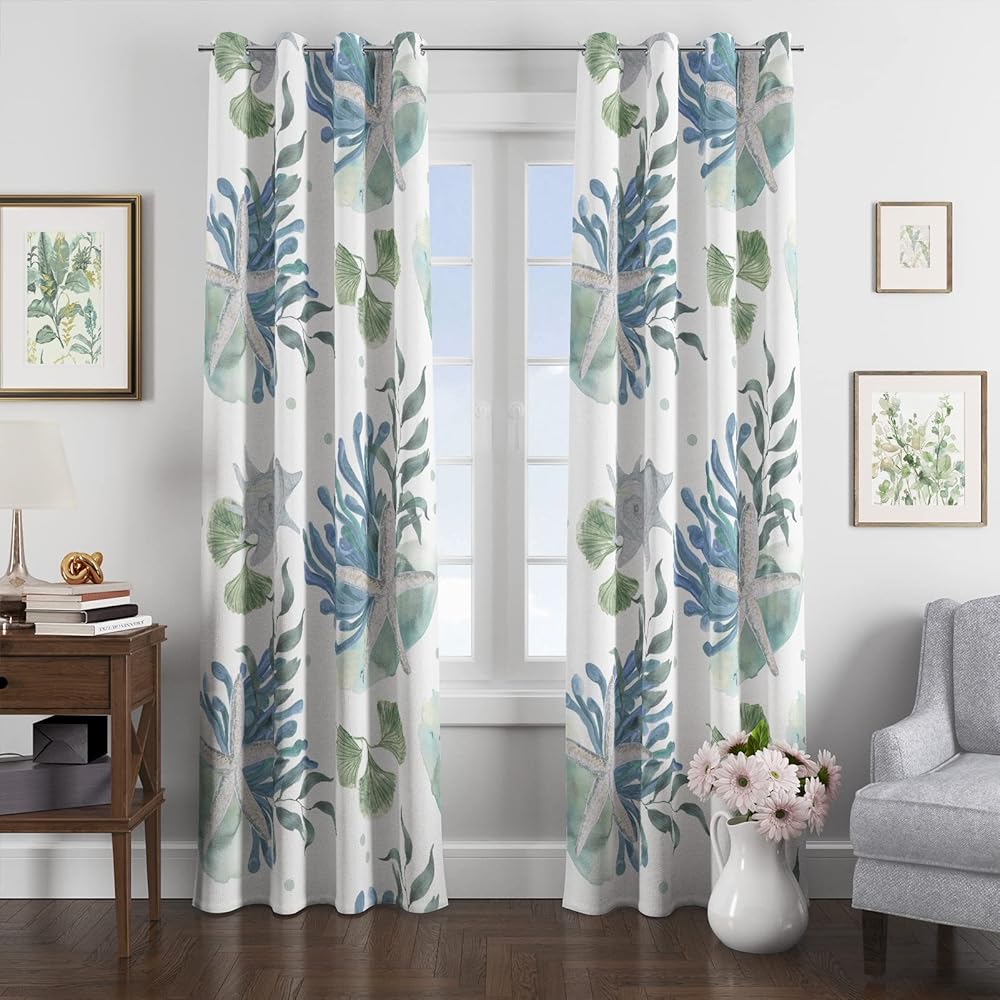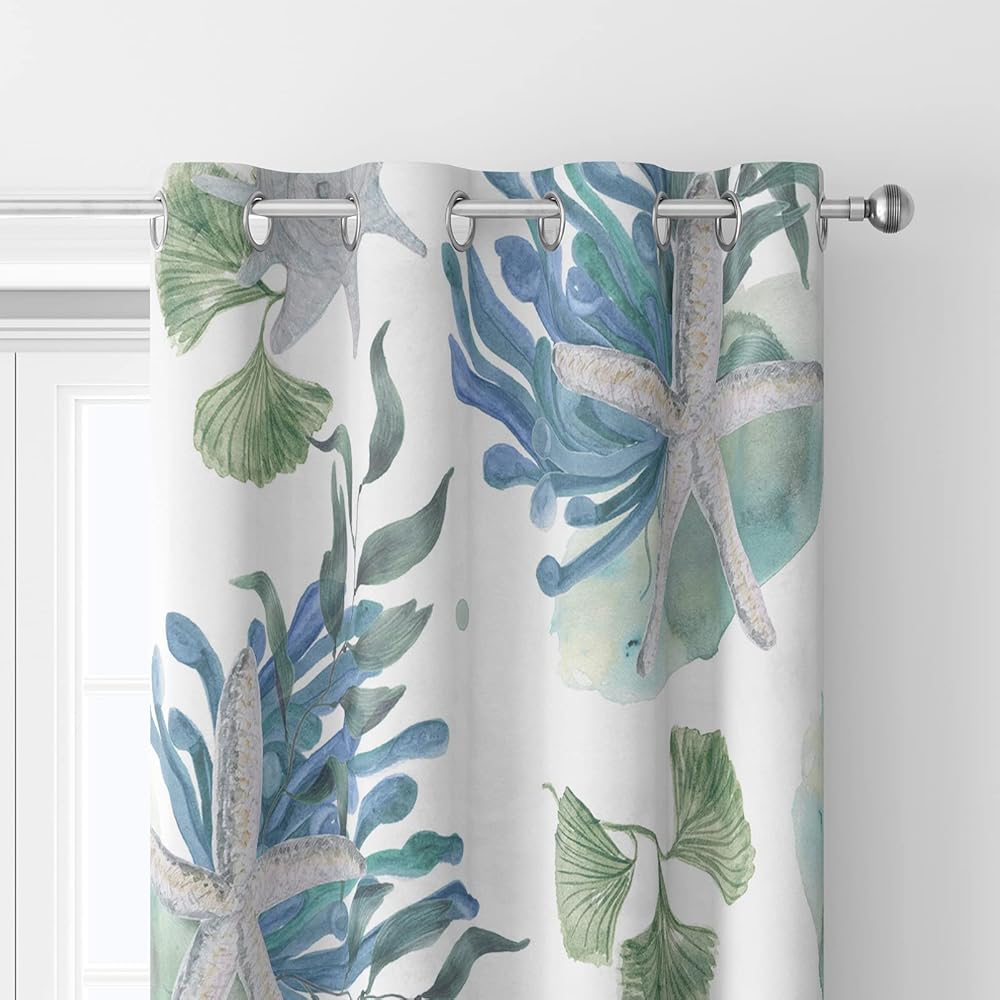 【UNIQUE DECOR】This sophisticated ocean-themed teal starfish coral branch print design will decorate your windows and rooms with new great effects, suits contemporary, traditional, vintage style home, can refresh and brighten your space, and adorn well for your home, office, apartment, bathroom or kitchen.Nice fabric, easy care, does a good job blocking the light, and is reasonably priced.