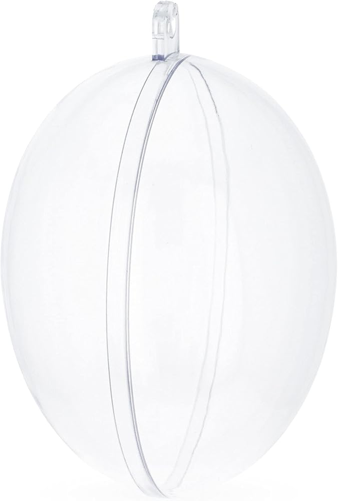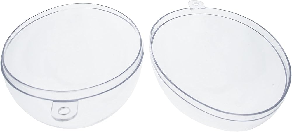 Unleash your creativity using this clear plastic ornament. Decorate the exterior with paint and stickers, or fill them with glitter, artificial snowflakes or mini charms. 3.5 Inches Tall x2.8 Inches Wide x 1.75 Inches Thick Acrylic Plastic Openable - Each One Can be Separated into 2 Parts in Order to Open and Close Freely Integrated Loop for Hanging Shatterproof, Child-safe Made of Heavy Gauge Plastic, Almost Glass-like Material Packaged in Clear Plastic Bag Each sphere arrives nested in half and ready for assembly - You can fill the clear balls with any small accents such as ribbon pieces, mistletoe, trinkets or beads to create keepsakes during the holiday season, weddings, graduation, and party decor. The possibilities are endless!