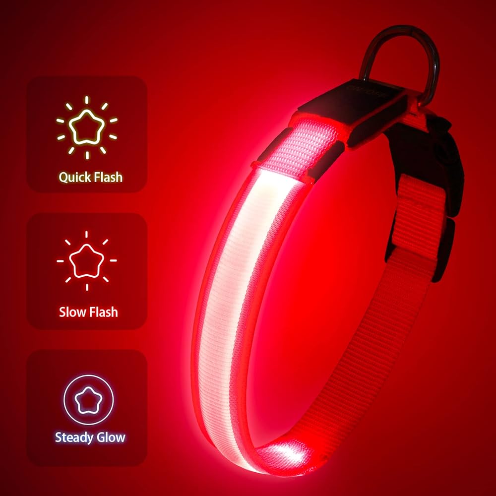 👍رؤية 500 متر في الظلام: طوق الكلاب LED من Domagiker مع ألياف بصرية مسطحة فائقة السطوع - حافظ على سلامة حيوانك الأليف ورؤيته في ظروف الإضاءة المنخفضة!