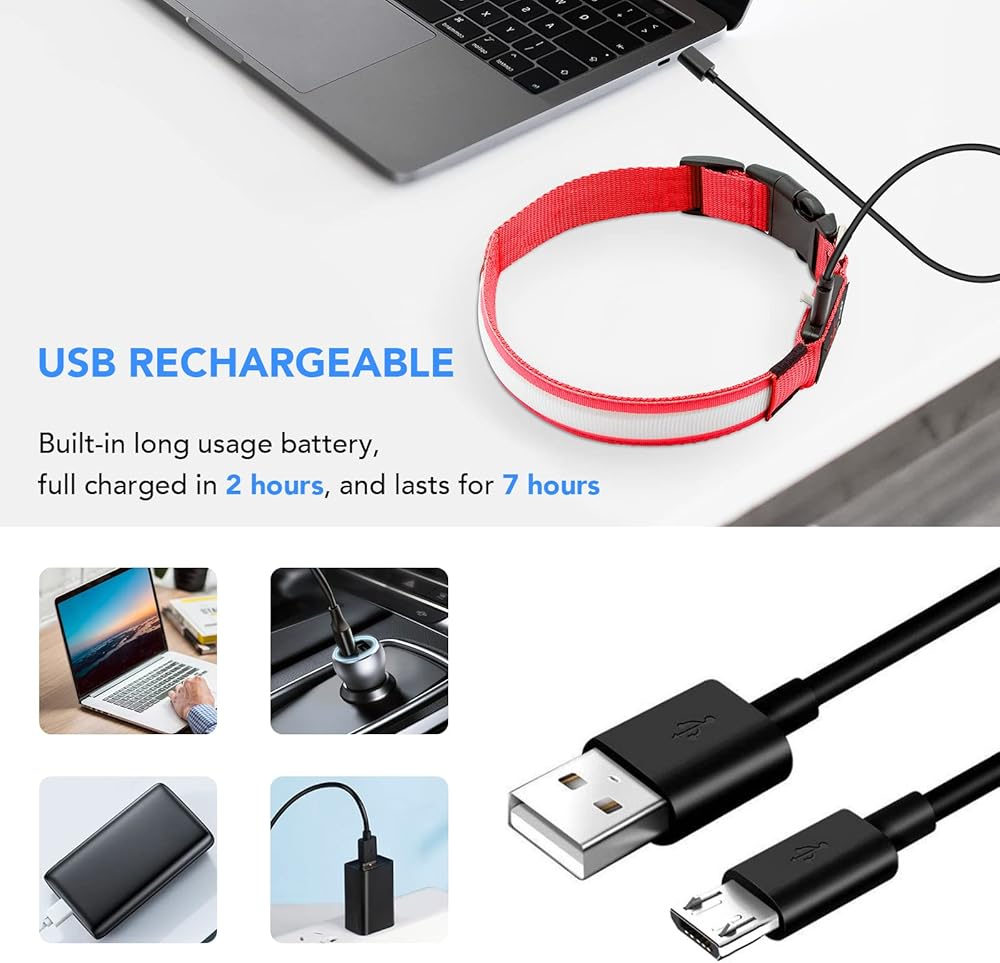 👍3 أوضاع فلاش - مصممة لتوفير الراحة والأمان لأصدقائك ذوي الفراء. يتم شحنه خلال ساعتين فقط ويمكن أن يستمر لمدة تصل إلى 10 ساعات في التوهج الثابت و13 ساعة في وضع الوميض. وهو متوافق مع مجموعة متنوعة من أجهزة الشحن، مثل شواحن الهواتف المحمولة وأجهزة الكمبيوتر المحمولة وأجهزة الكمبيوتر الشخصية والأجهزة اللوحية وأنابيب التلفزيون الذكية ومحولات الطاقة USB. بضغطة واحدة فقط على زر التشغيل/الإيقاف، يمكنك الاختيار من بين ثلاثة أوضاع: الوميض السريع، والوميض البطيء، والتوهج الثابت.