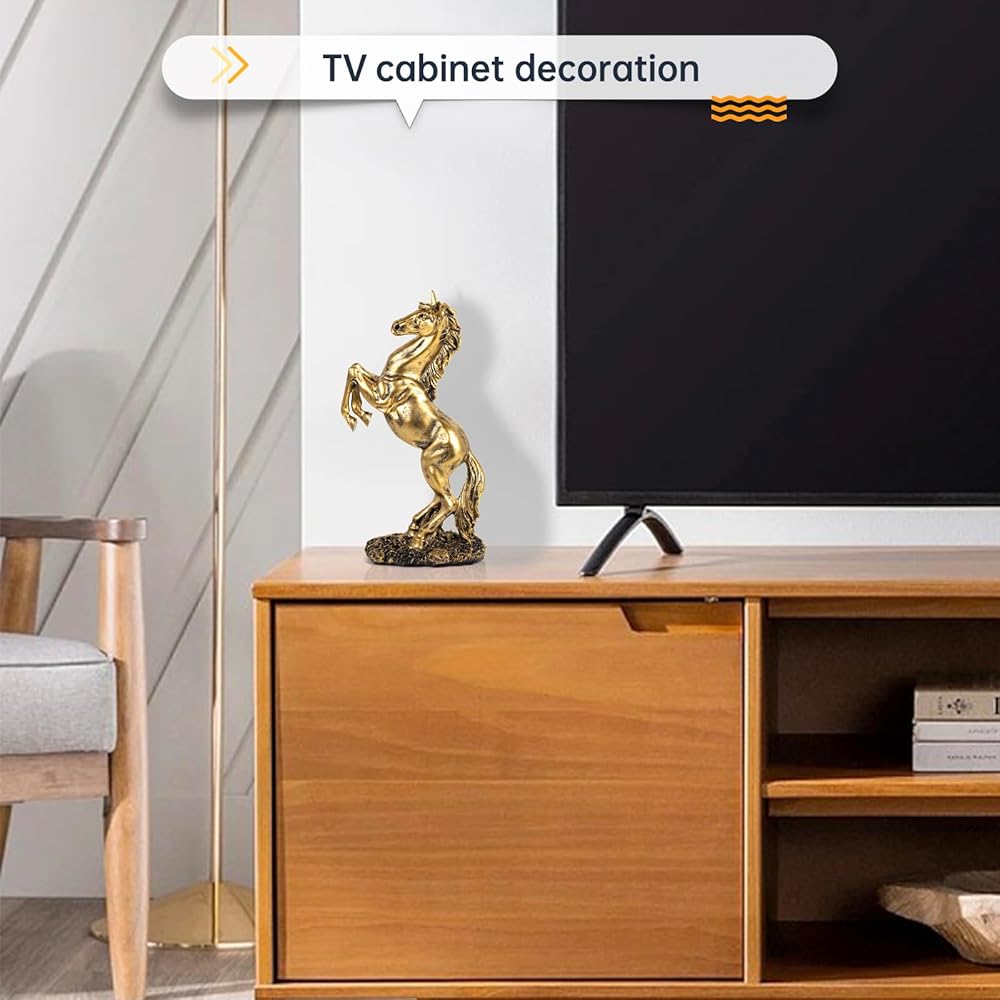 Exquisite Craftsmanship: This standing horse statue is crafted from high-quality resin sandstone, showcasing fine workmanship by our senior artists. Its gold color finish adds a touch of elegance to any interior or outdoor space.
