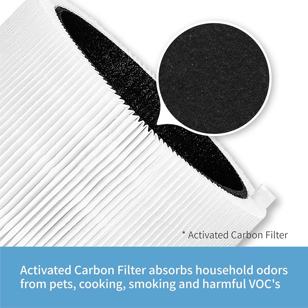 2 Layer System:HEPASilent filter captures 99. 97% of particles as small as 0. 1 μm such as pollen,dust and pet dander. Activated Carbon Filter absorbs household odors from pets,smoking,cooking and harmful VOC's.